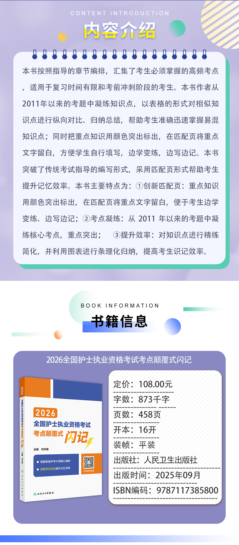 书名:2026全国护士执业资格考试考点颠覆式闪记