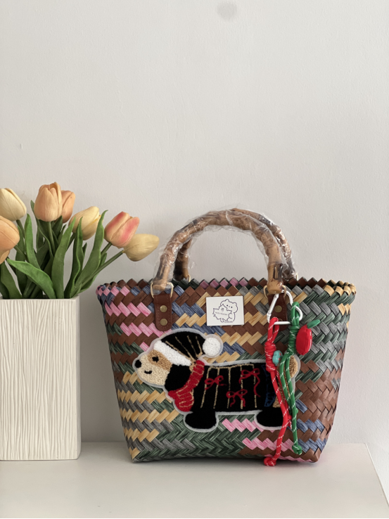 🍅出口欧洲品质❗实体店在售【ANNA手艺人条纹狗狗编织手提包S6105】纯手工制作🧺60岁老手艺人匠心编织 🌟就像一件工艺品