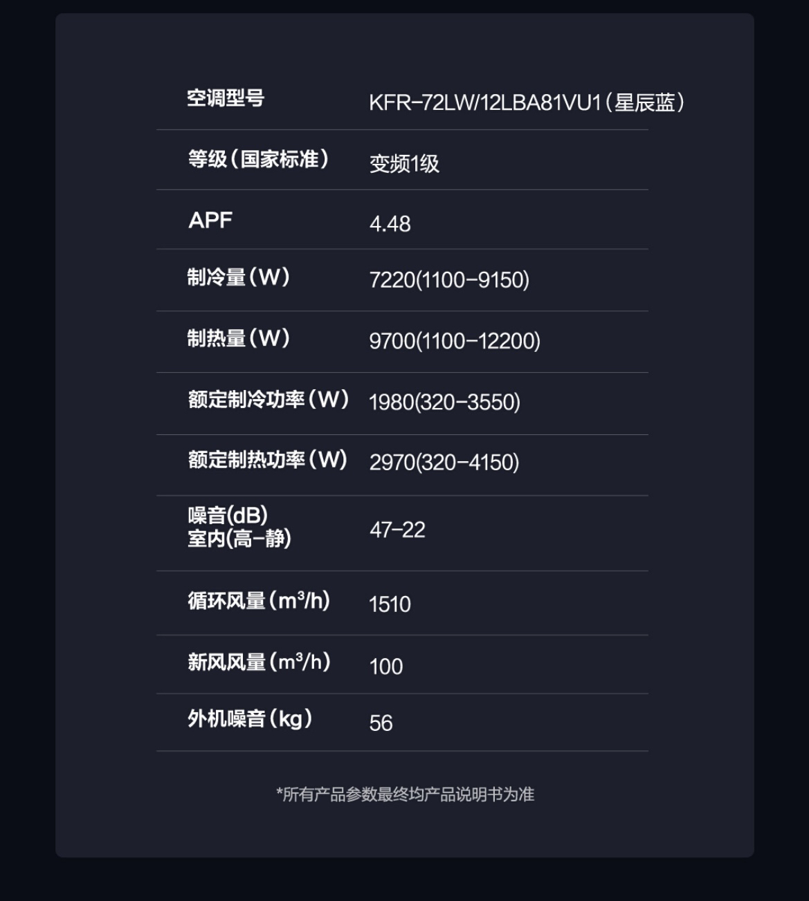 海尔(Haier)新风空调KFR-72LW/12LBA81VU1(星辰蓝)