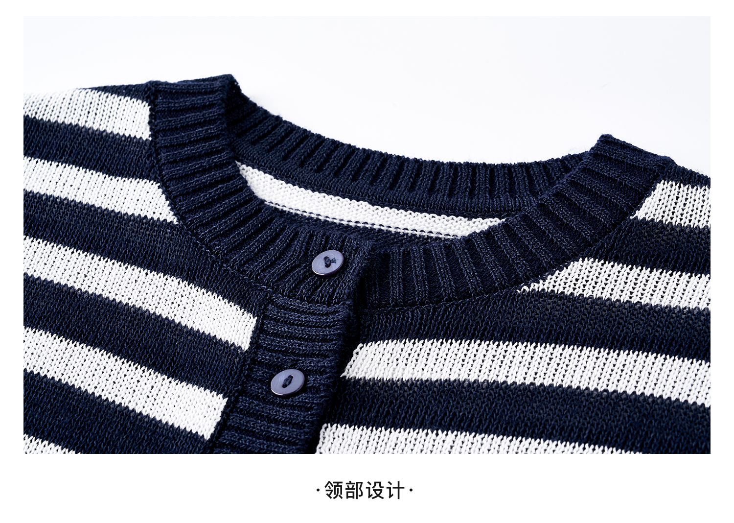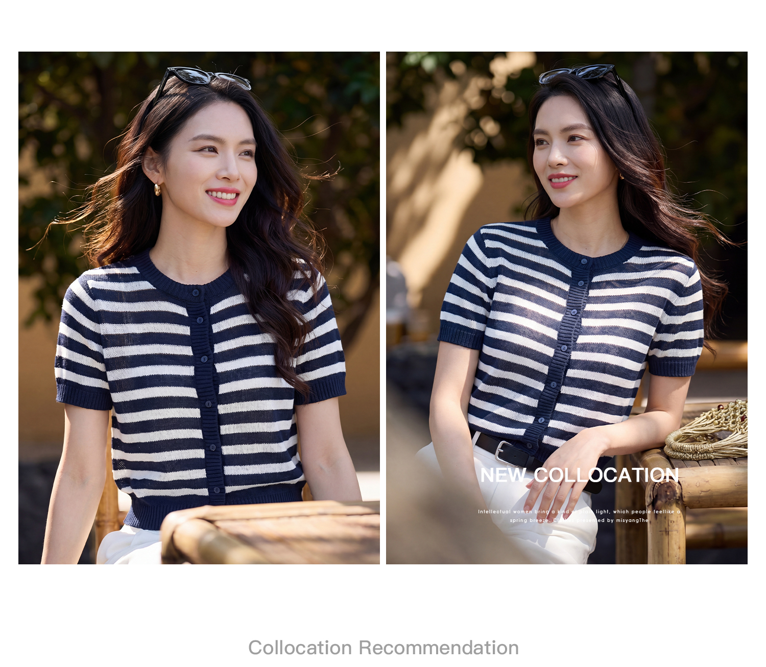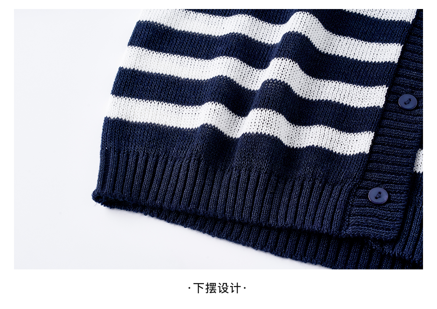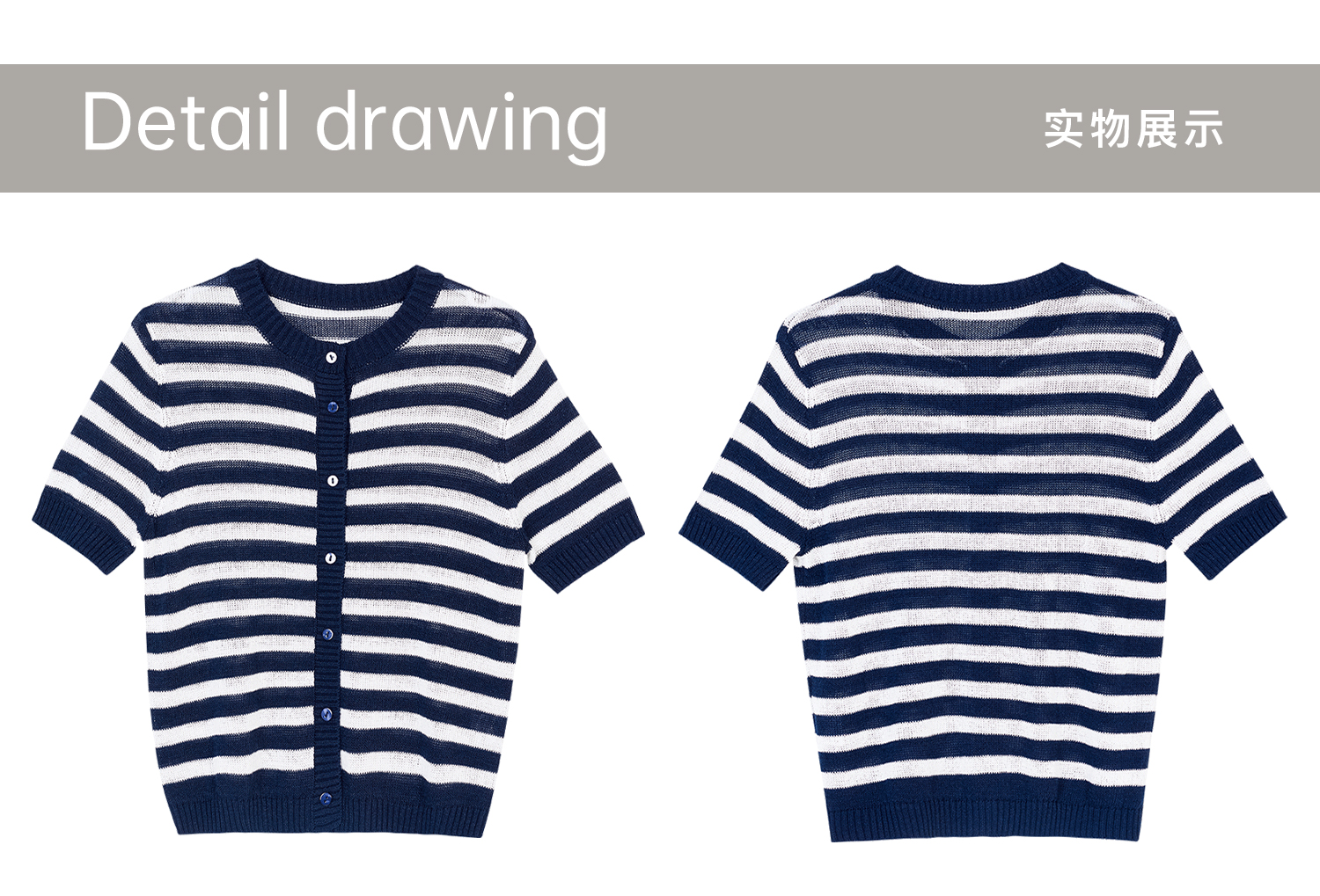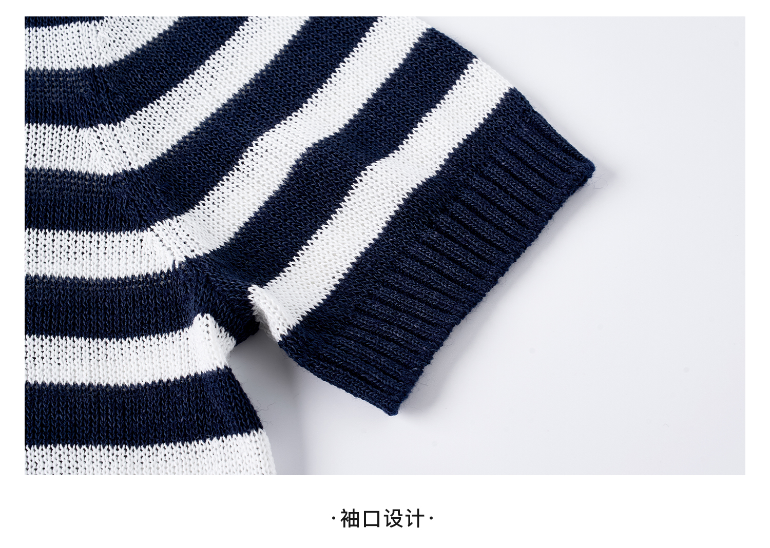 航海蓝条纹针织T 复古撞色 米思阳2026夏季复古风条纹含羊毛短袖针织开衫上衣1310