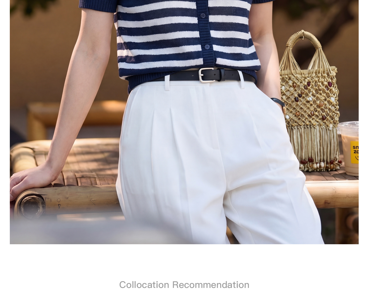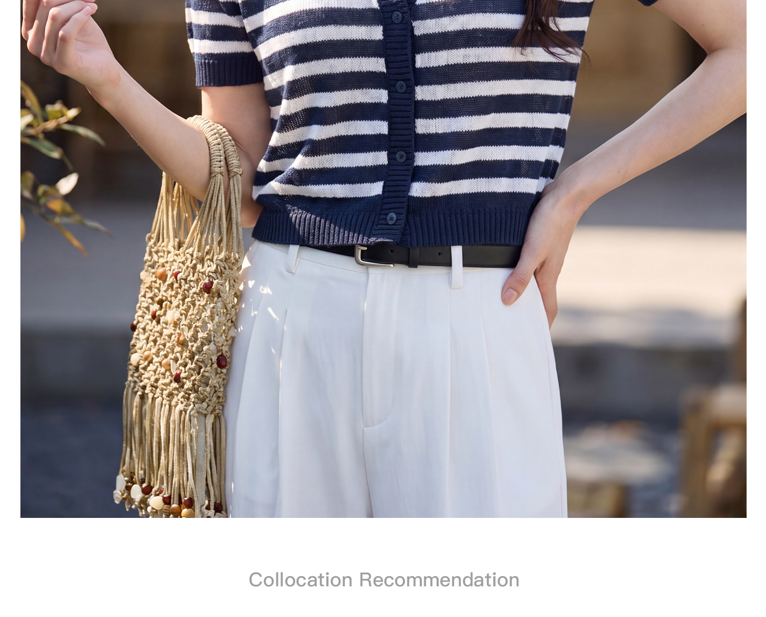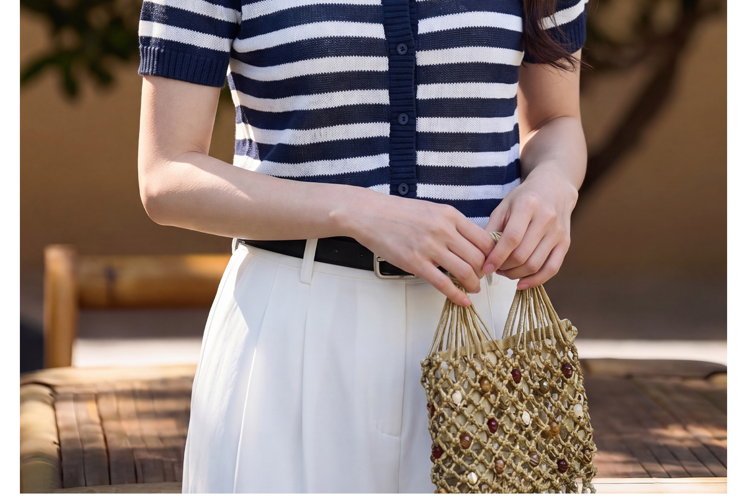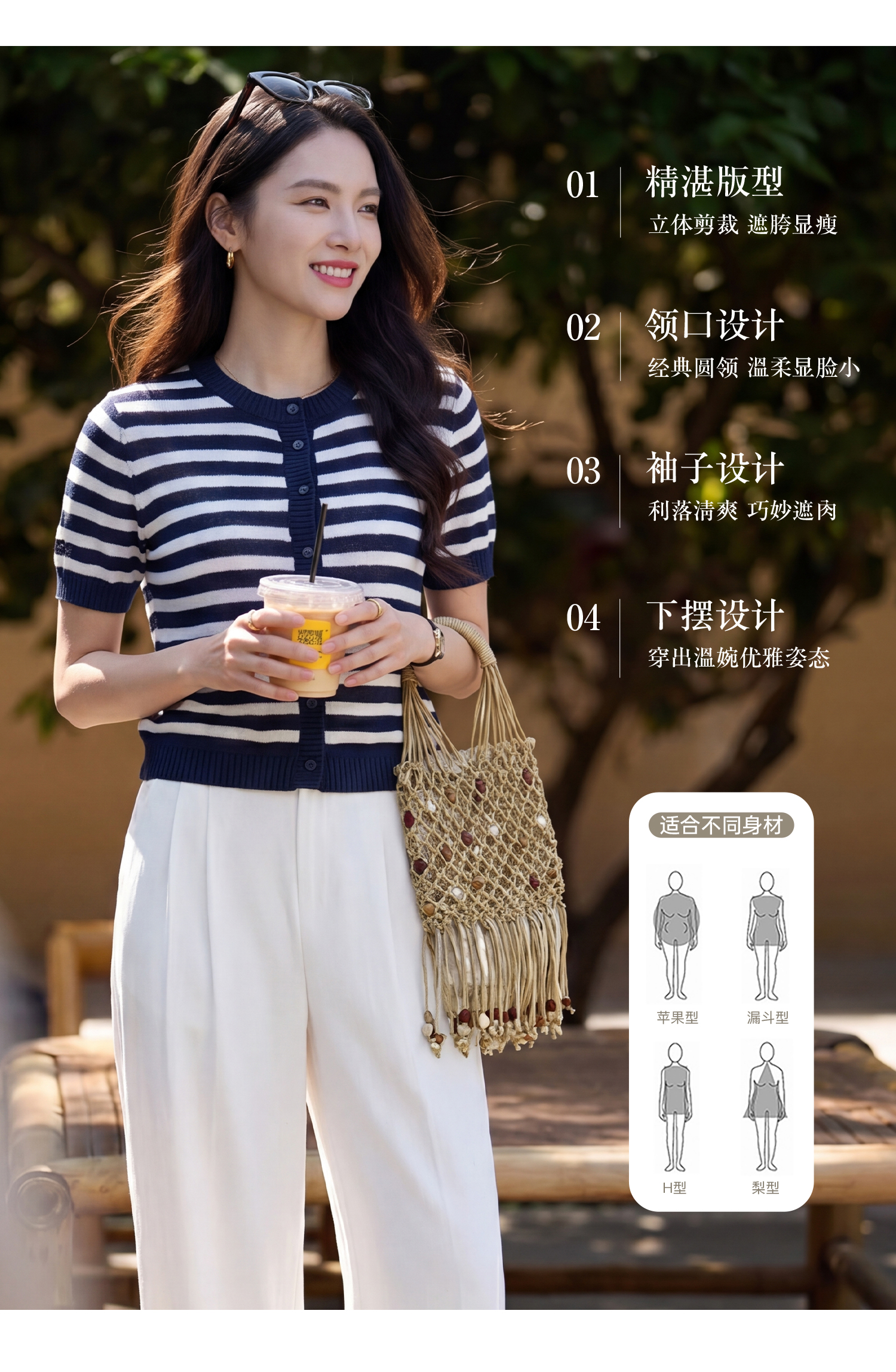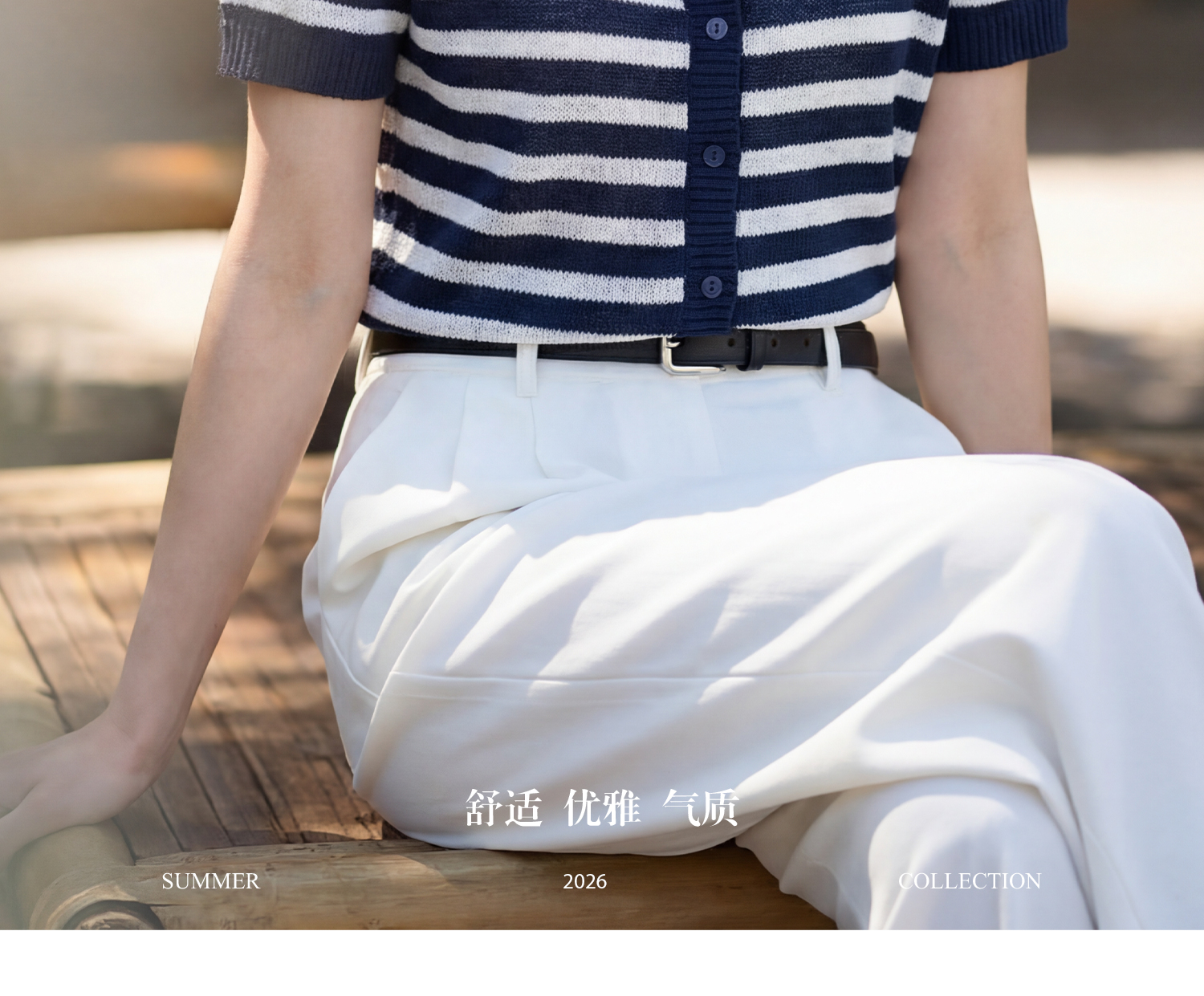 航海蓝条纹针织T 复古撞色 米思阳2026夏季复古风条纹含羊毛短袖针织开衫上衣1310