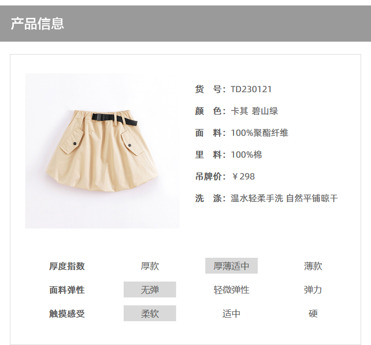马克珍妮春夏新款 女童户外风速干工装半身裙230121