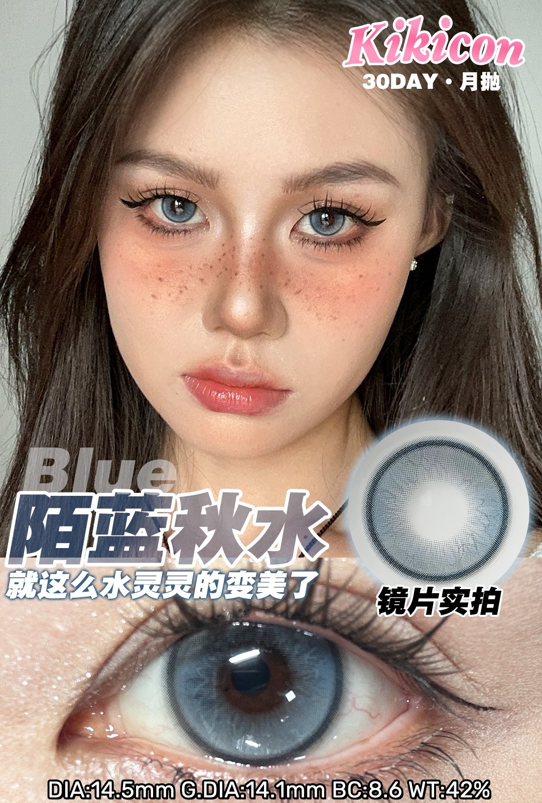 kikicon 月抛 陌蓝秋水 直径14.5mm 着色14.1mm 商品图1