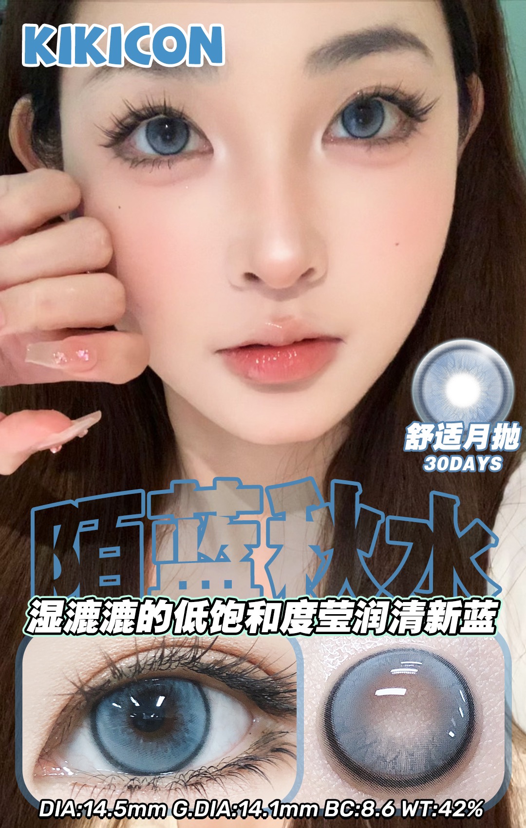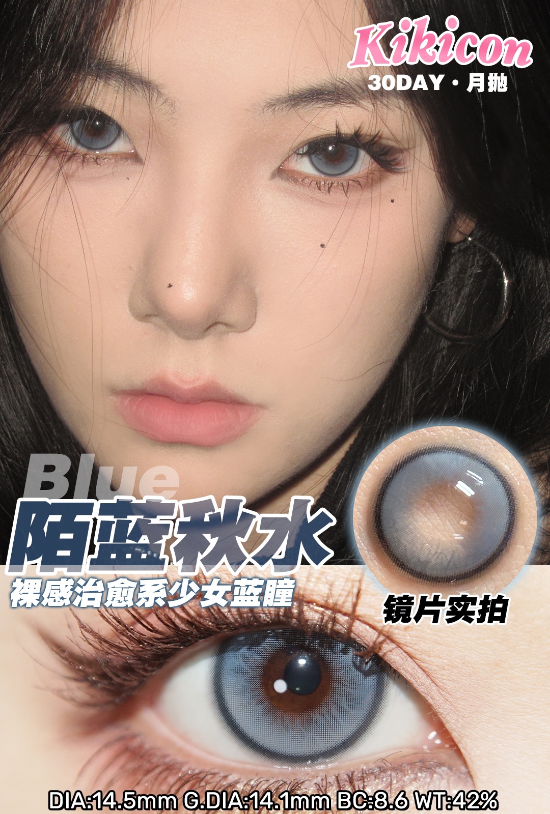 kikicon 月抛 陌蓝秋水 直径14.5mm 着色14.1mm 商品图0
