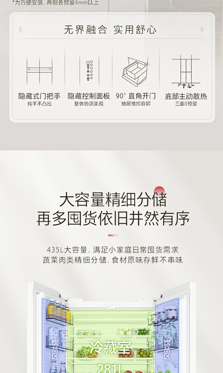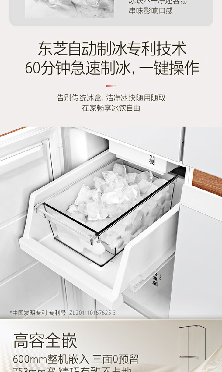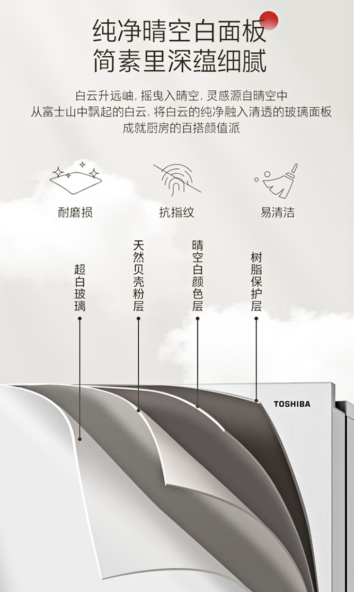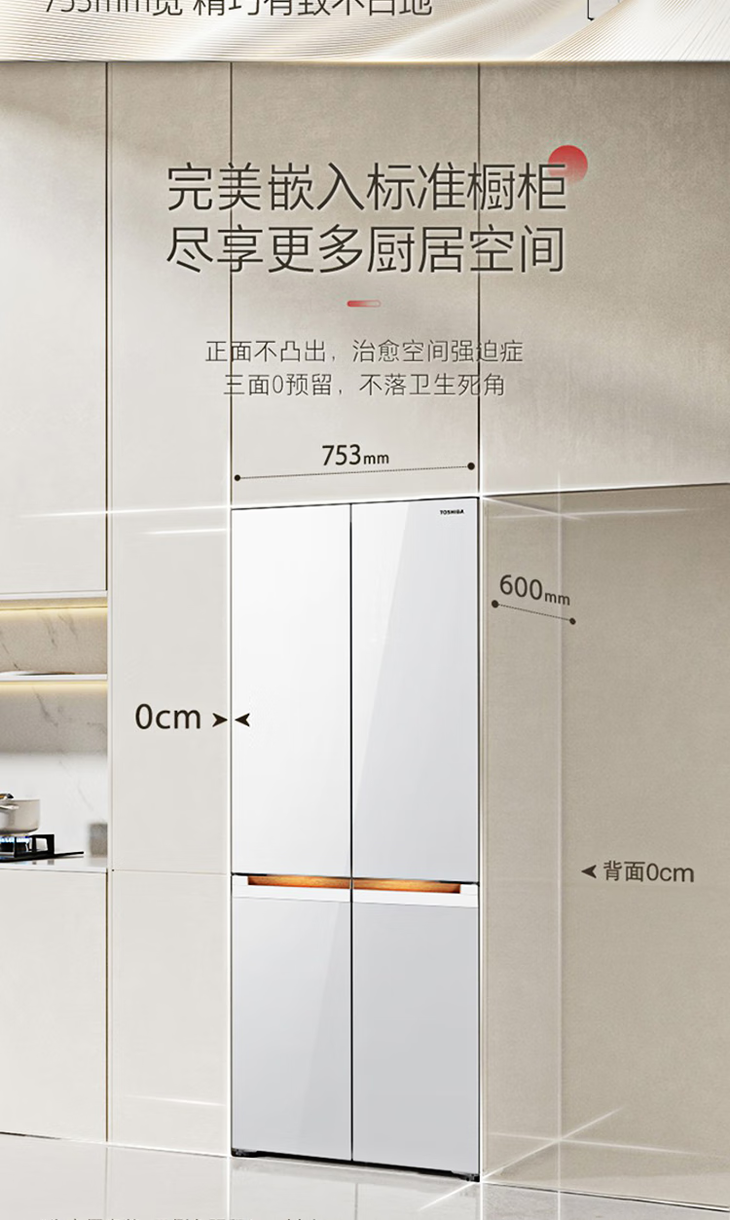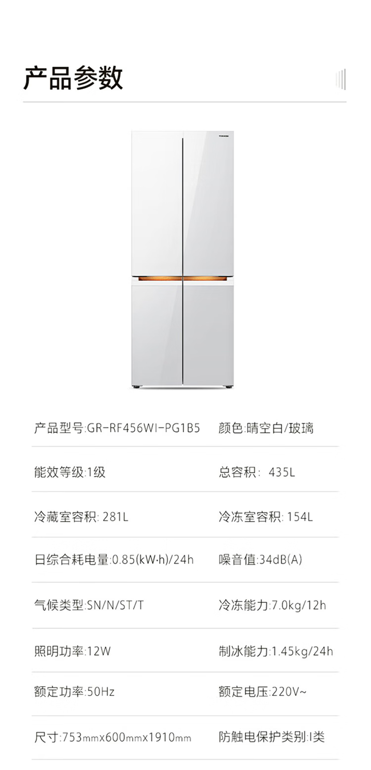 东芝(TOSHIBA)(12989)435升嵌入式十字四门冰箱小白梨 无霜冷冻雾化保鲜急速制冰负氧除菌 GR-RF456WI-PG1B5晴空白