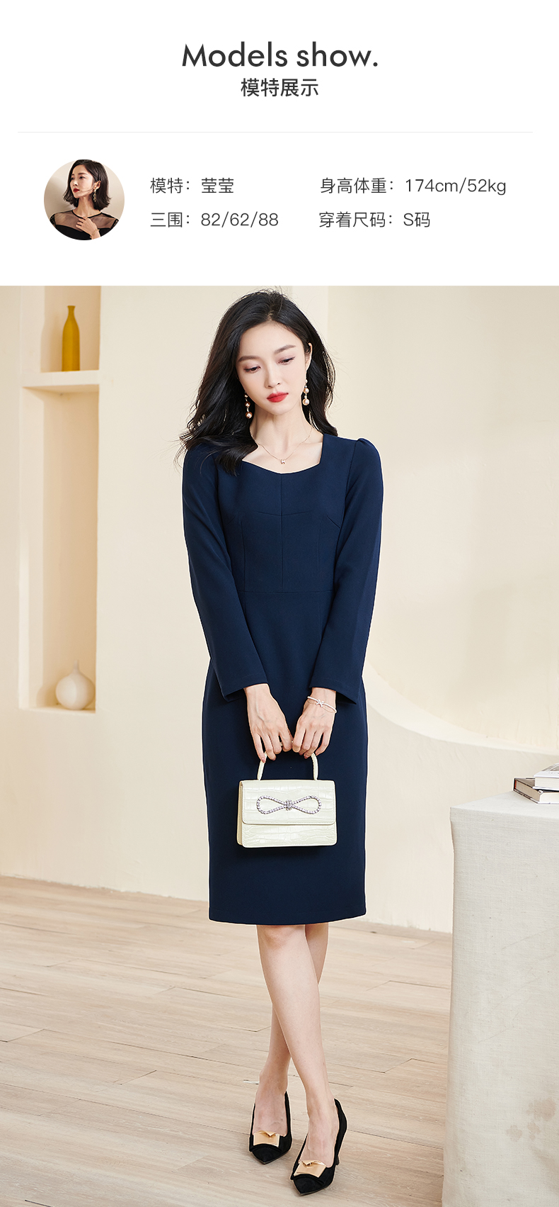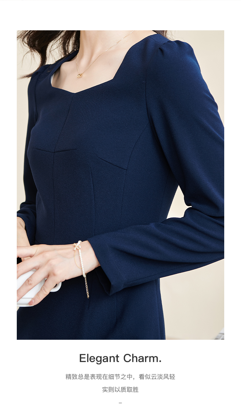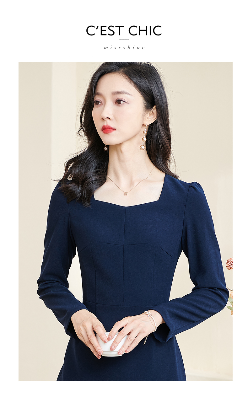 米思阳2026春季新款时尚气质纯色通勤OL连衣裙长袖修身裙子2471