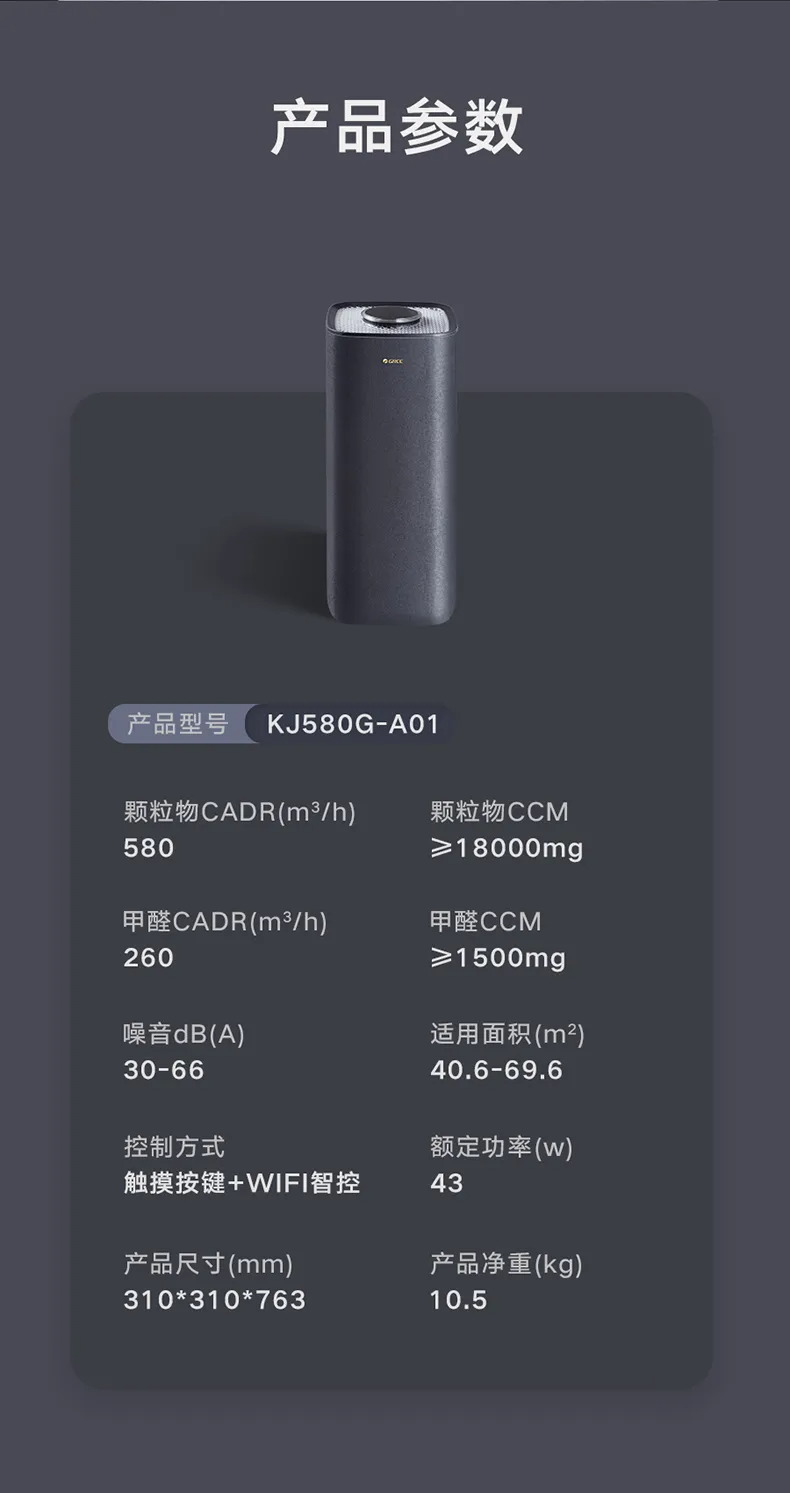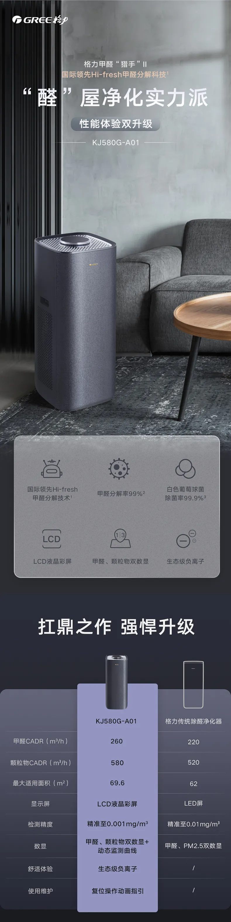 【预售】格力·空气净化器 KJ580G-A01 黛山紫