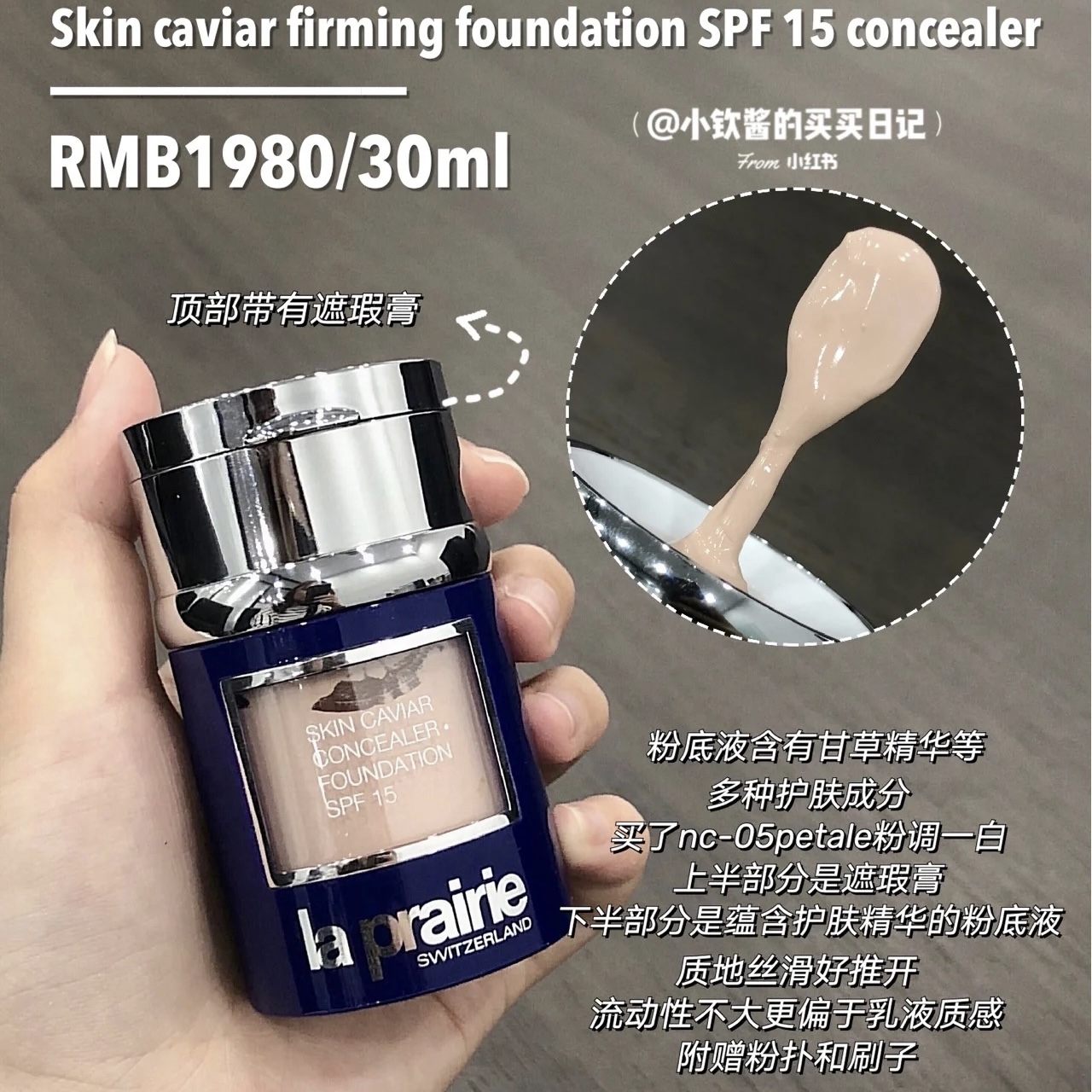【LA PRAIRIE】莱珀妮粉底液粉霜SPF15自带遮瑕膏 粉底液