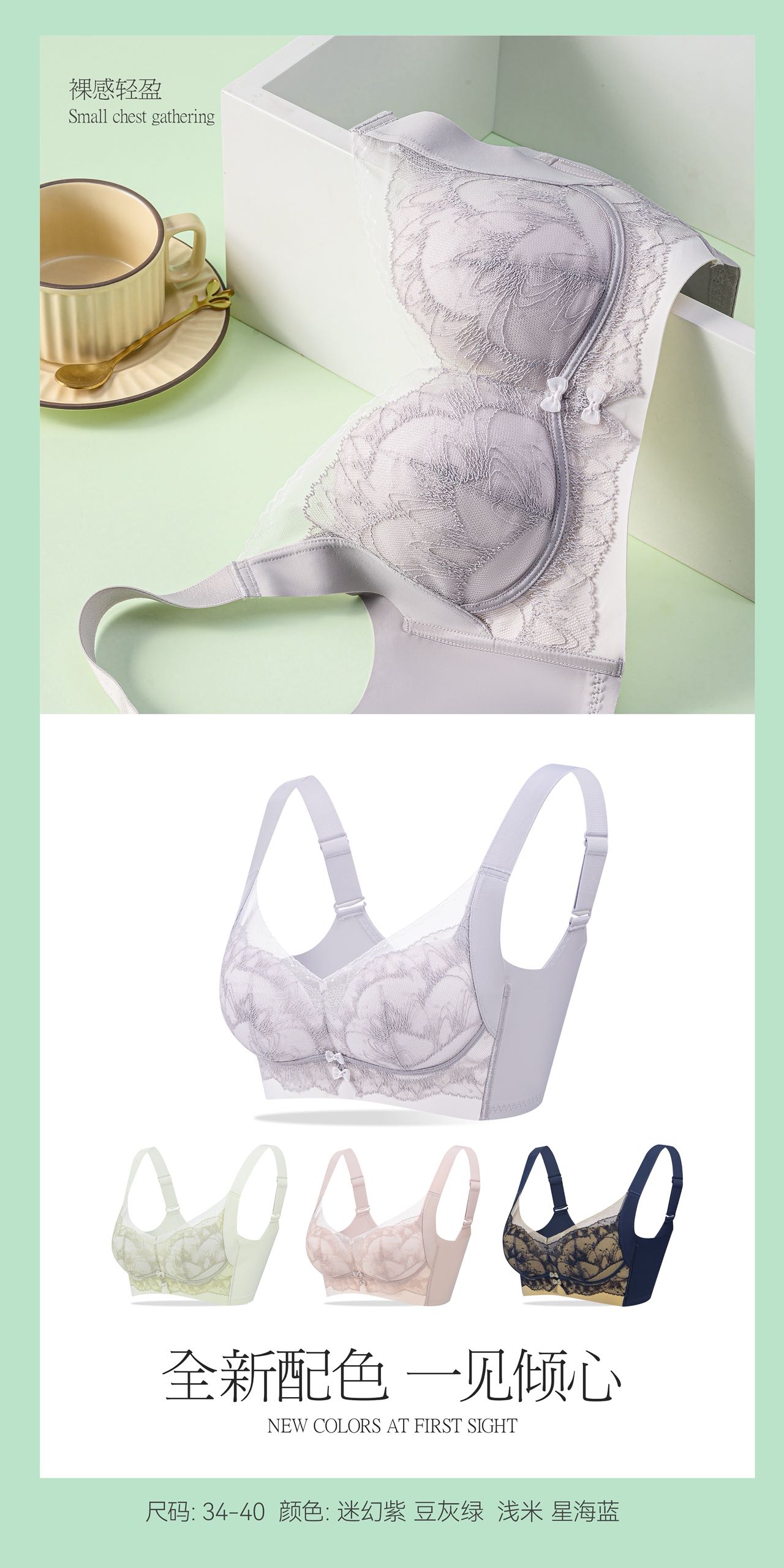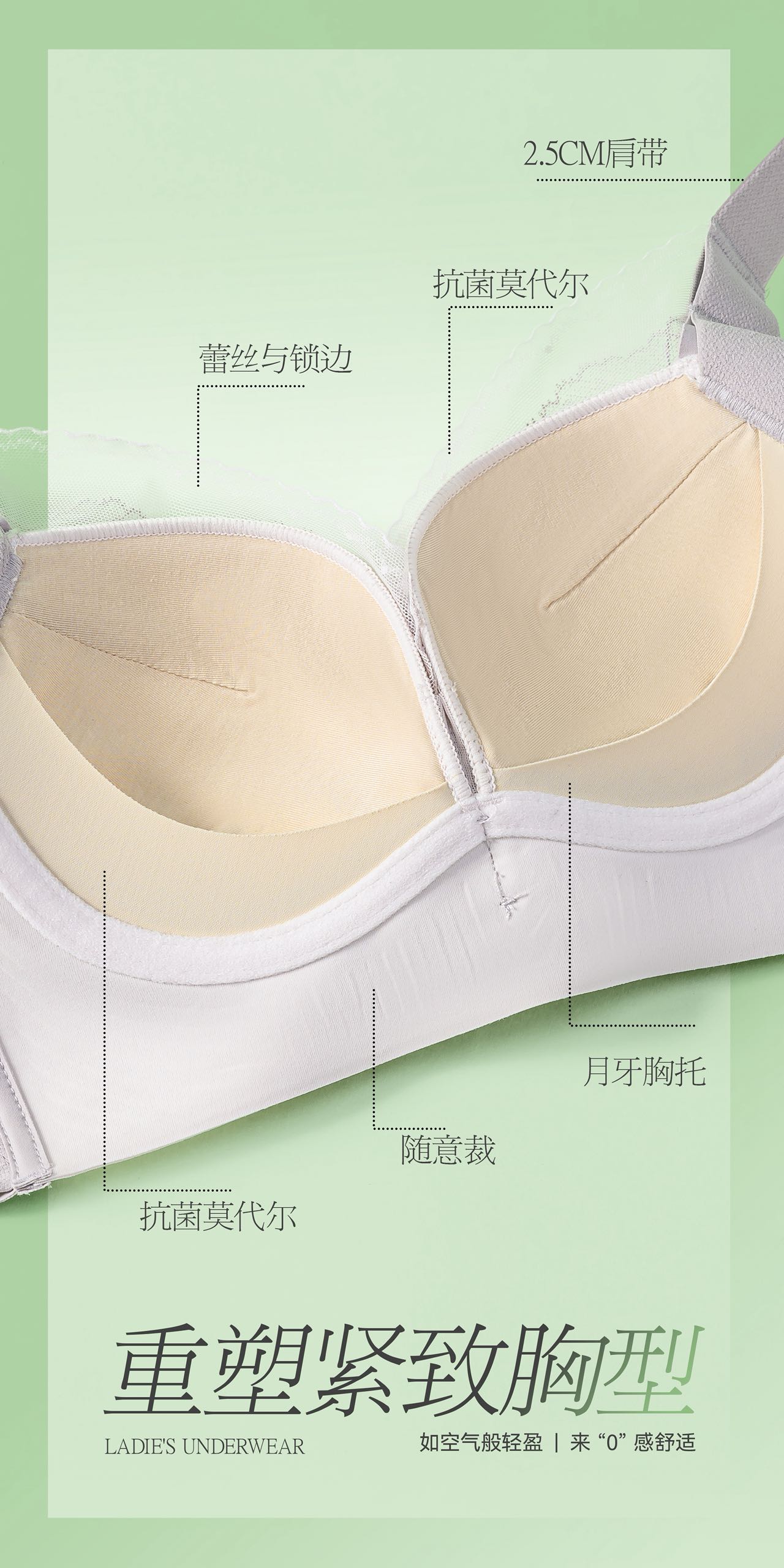 【59元1件】轻奢简约精简蕾丝零感调整型文胸-8831