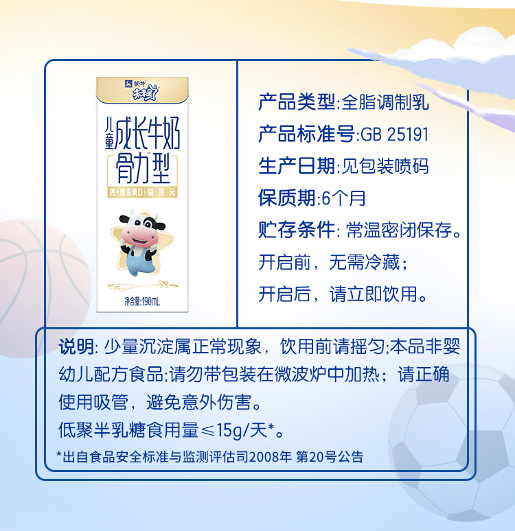 蒙牛未来星儿童成长牛奶苗条装 190nl*15盒 骨力型 全新升级(新日期发货)