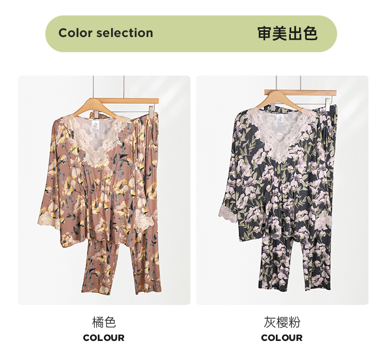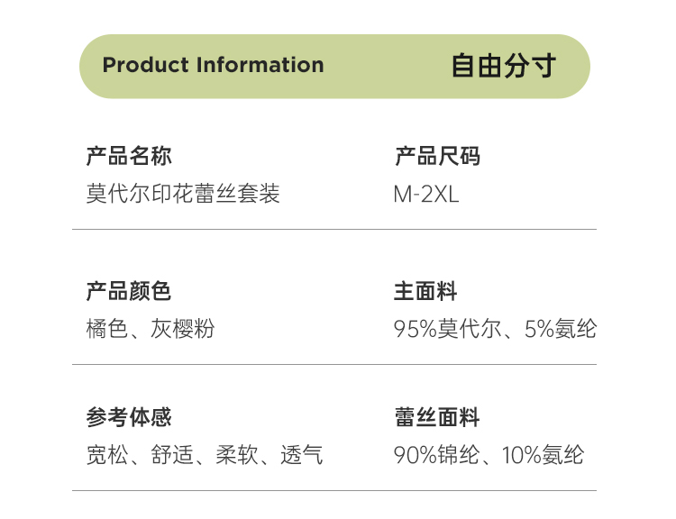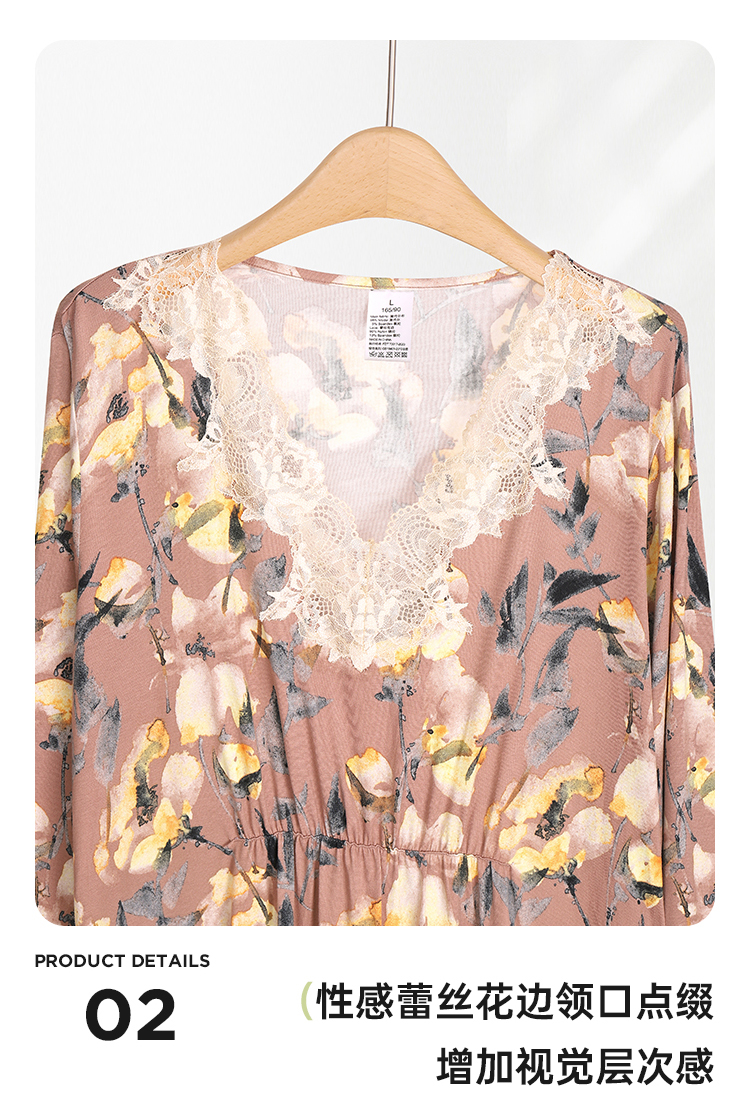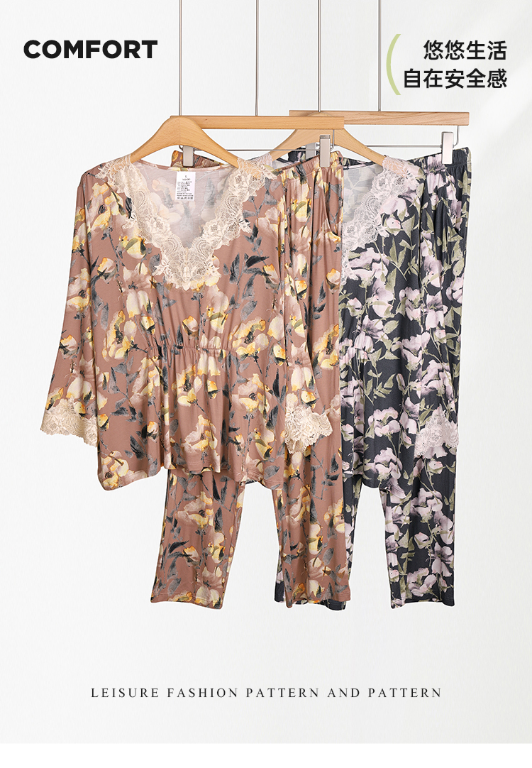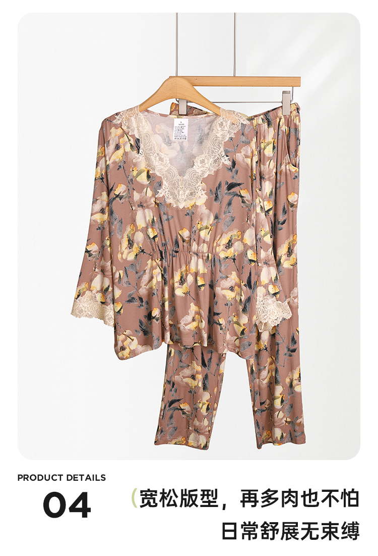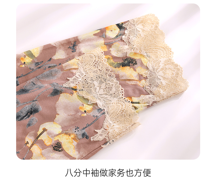 美奈川 莫代尔印花蕾丝套装JJ28184