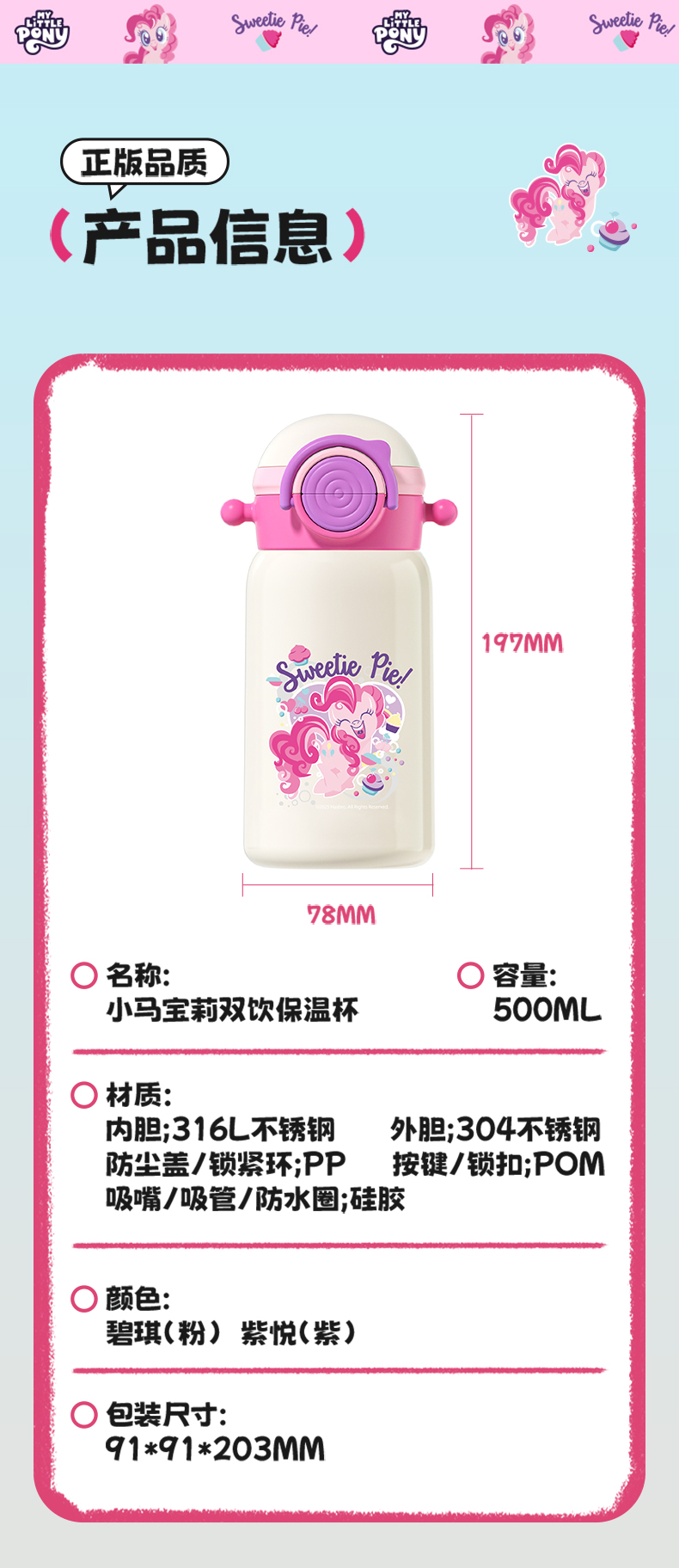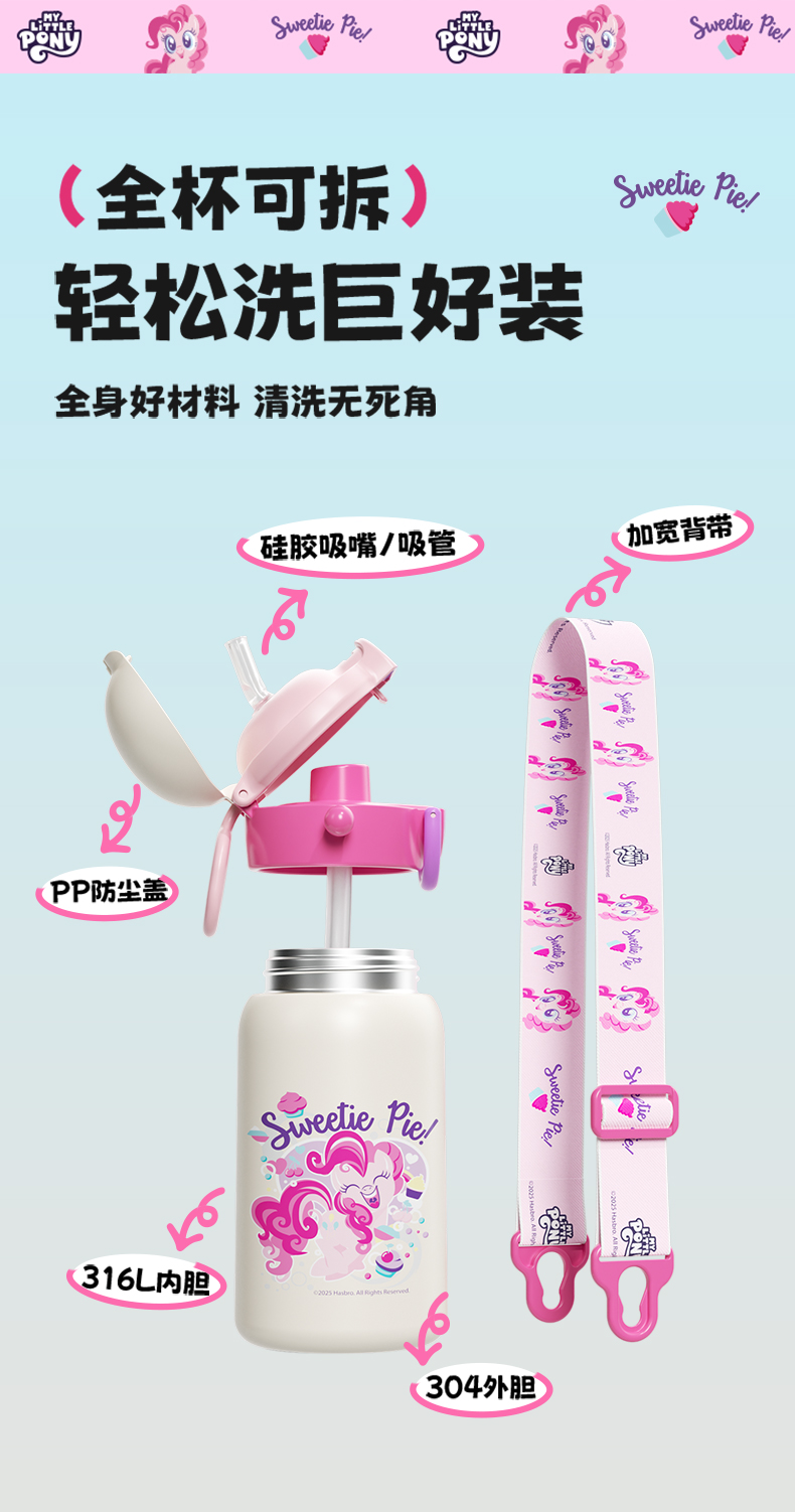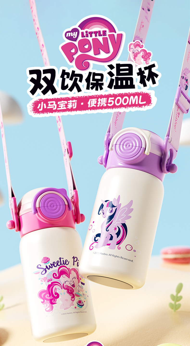 小马宝莉双饮口保温杯儿童保温水杯学生吸管杯宝宝杯子大容量