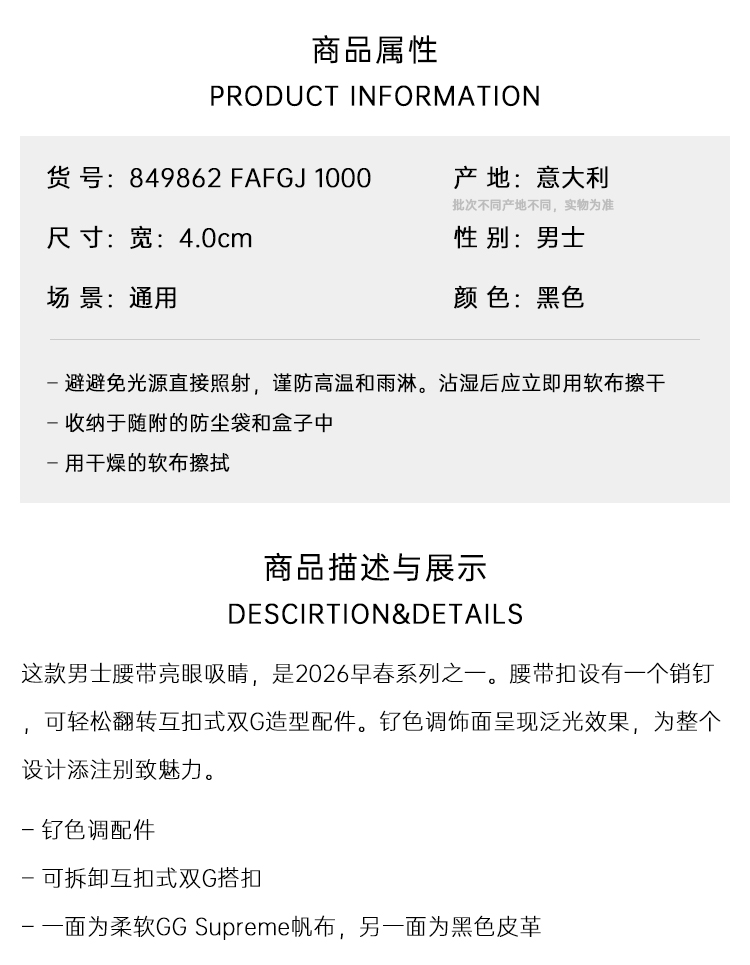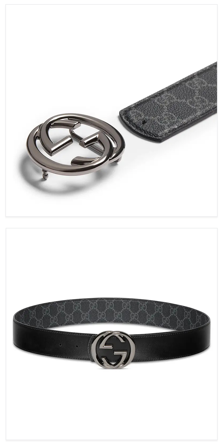 GUCCI 古驰 男士互扣式双G搭扣双面腰带 黑色 849862 FAFGJ 1000