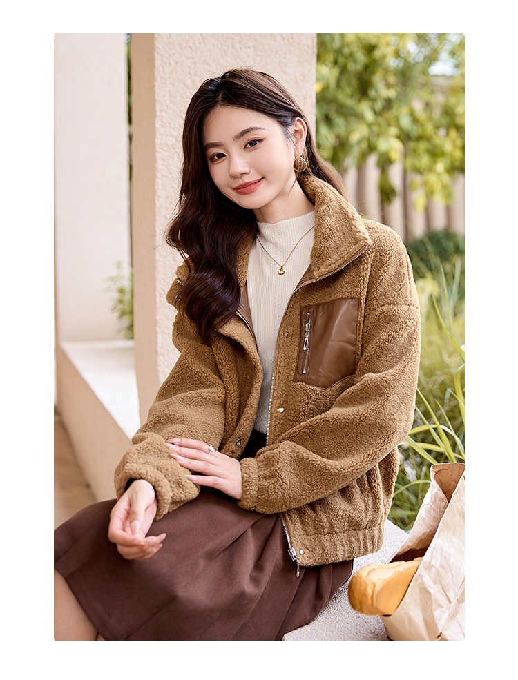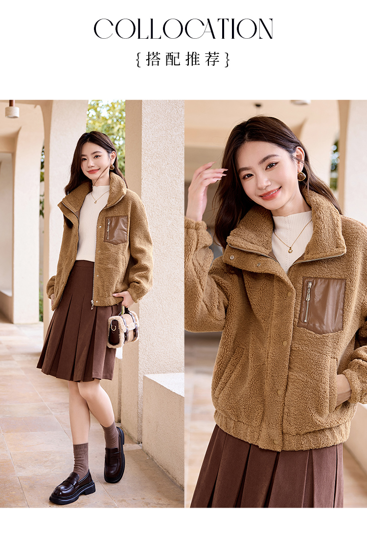 【年货节】熙世界羊羔毛外套女冬小个子休闲加厚毛绒绒短款大衣