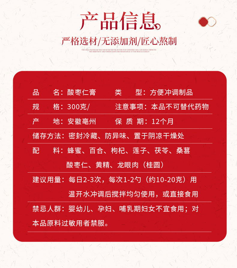 宝芝林酸枣仁膏 古法熬制 膏方拉丝 酸甜适口 300克/瓶