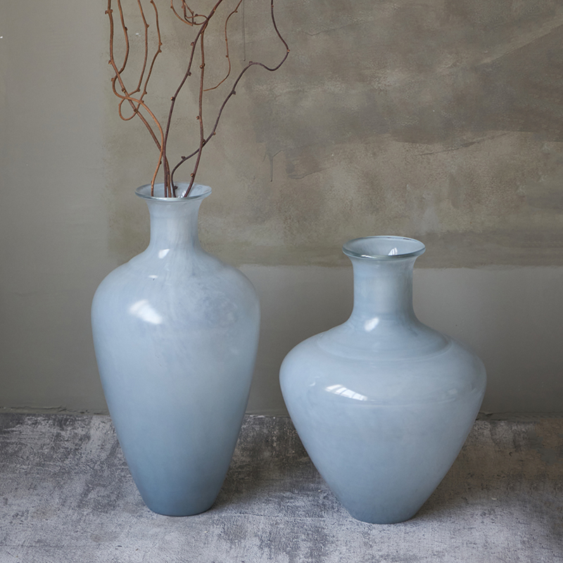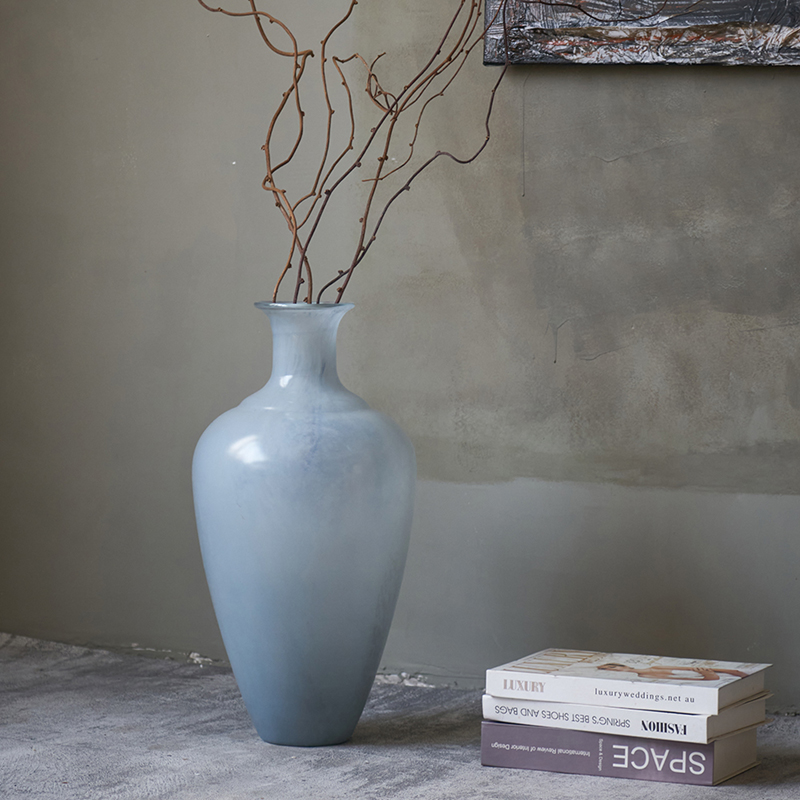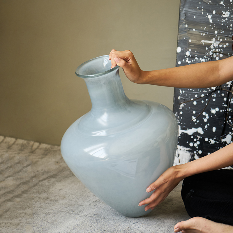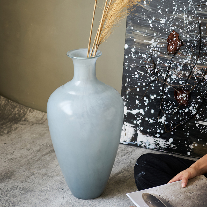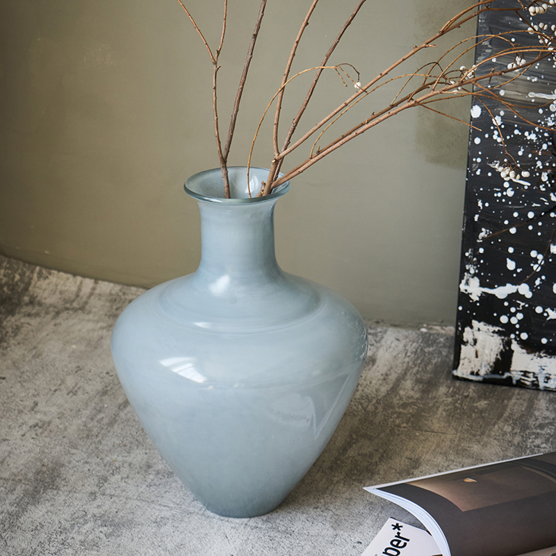 现代简约烟灰落地大件吊钟玻璃花瓶手工艺术大肚子马醉木样板房瓶