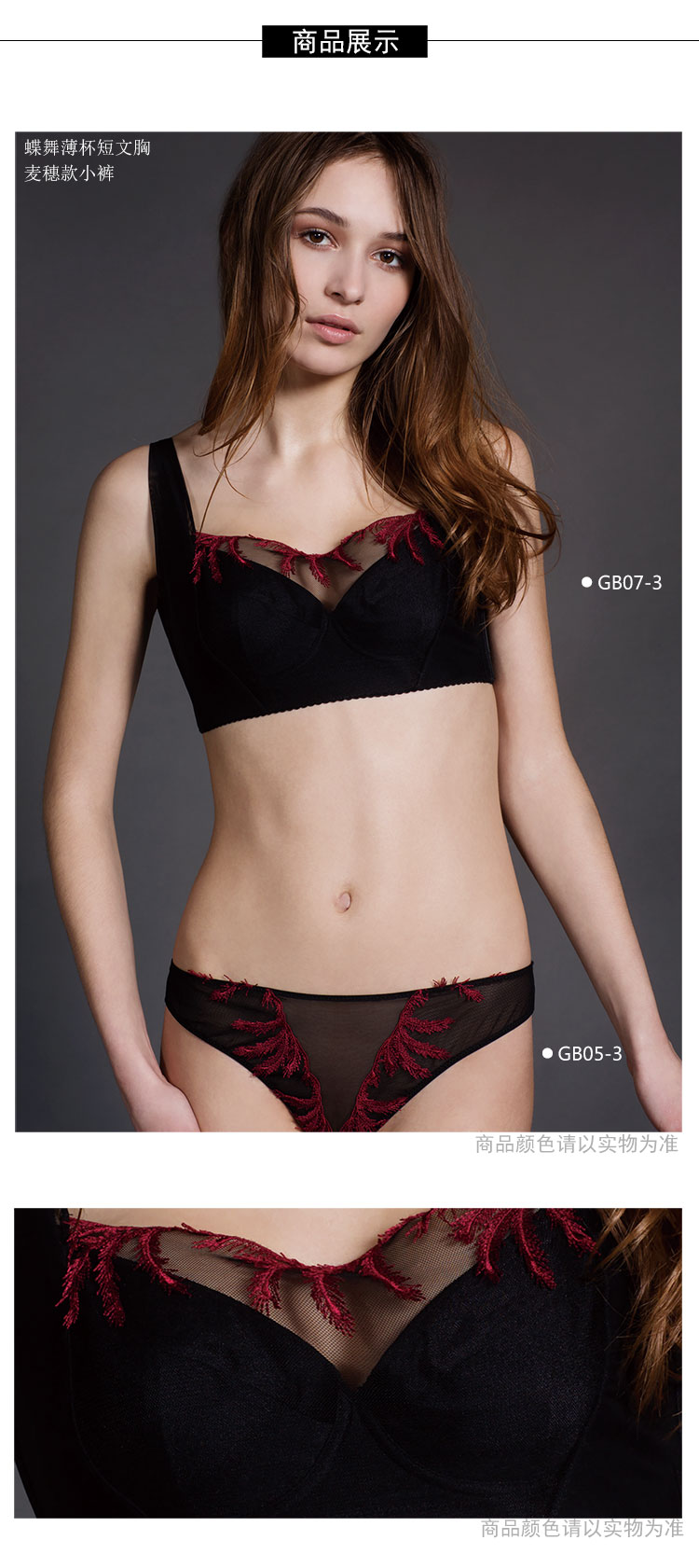 精塑 | 精棉·蕾丝棉杯长文胸(黑色)