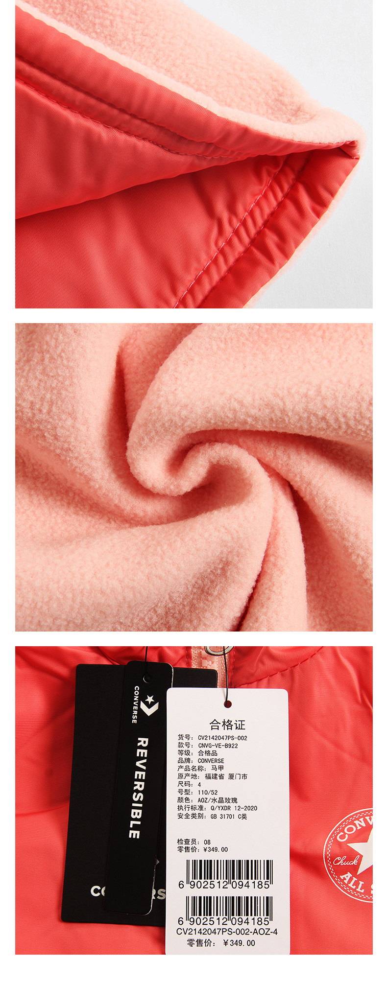 Converse匡威童装秋冬女童保暖舒适双面休闲马甲坎肩CV2142047
