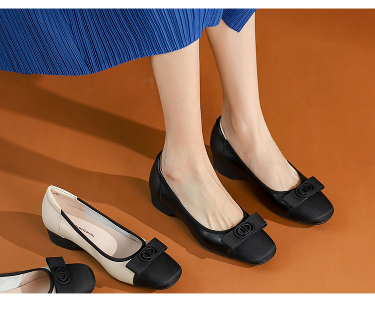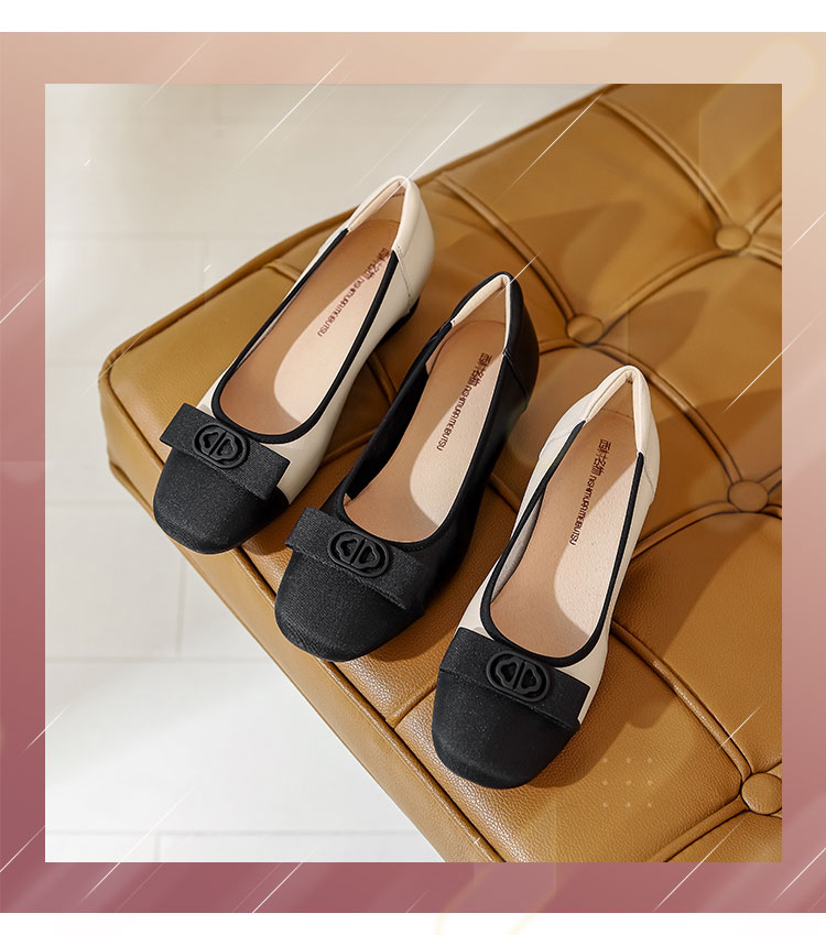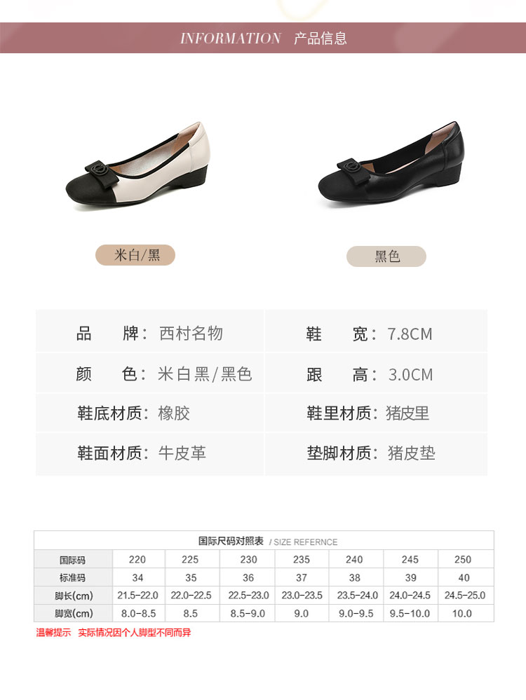 西村名物22秋季新款小香风气质蝴蝶结浅口低跟休闲单鞋19351