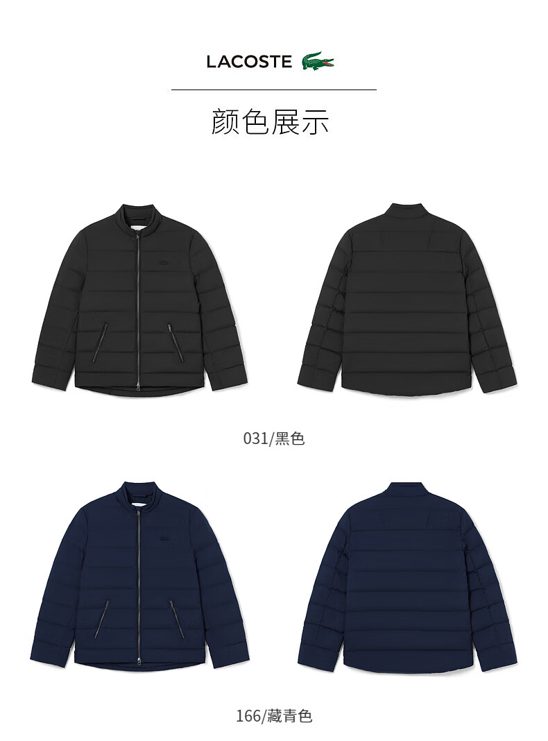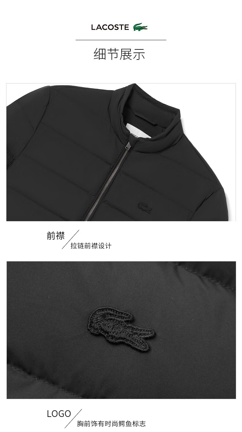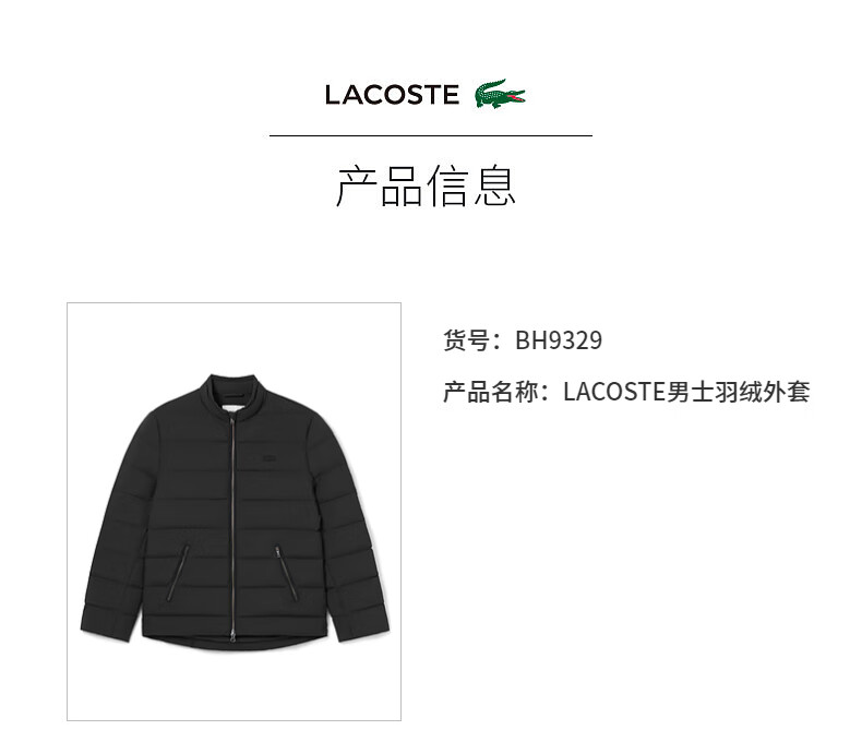 【海南专供价】Lacoste法国鳄鱼男装时尚休闲宽松鹅绒服羽绒服外套BH9329-98