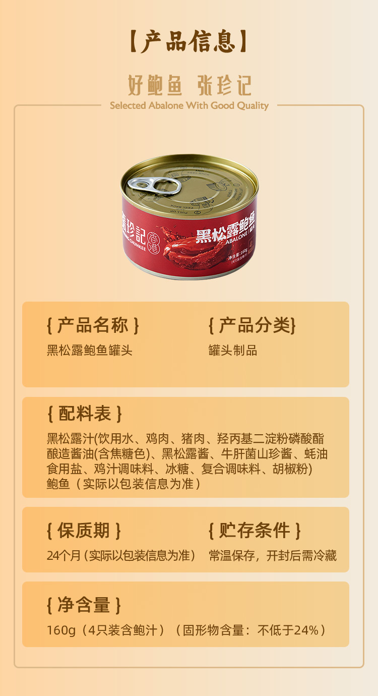 张珍记 黑松露鲍鱼罐头 4粒装 鲜美入魂真材实料 48小时发货