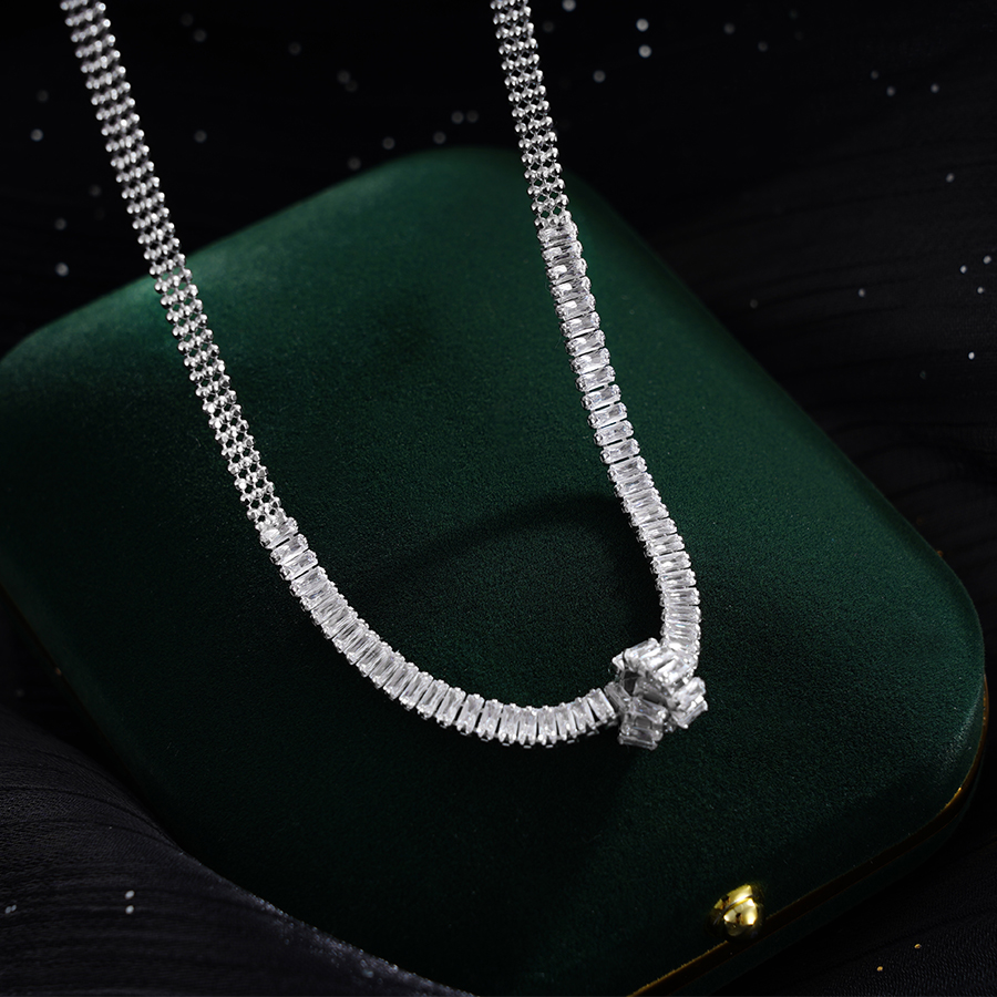 【寓意】:项链纯银材质,采用了复杂的镂空设计,经过精细的抛光工艺处理,锆石点缀其间,层层叠叠,宛如水面荡起的涟漪。波光粼粼,流转不息,角度变换,细腻梦幻。