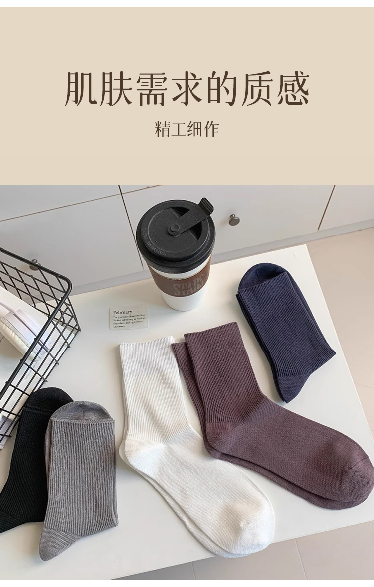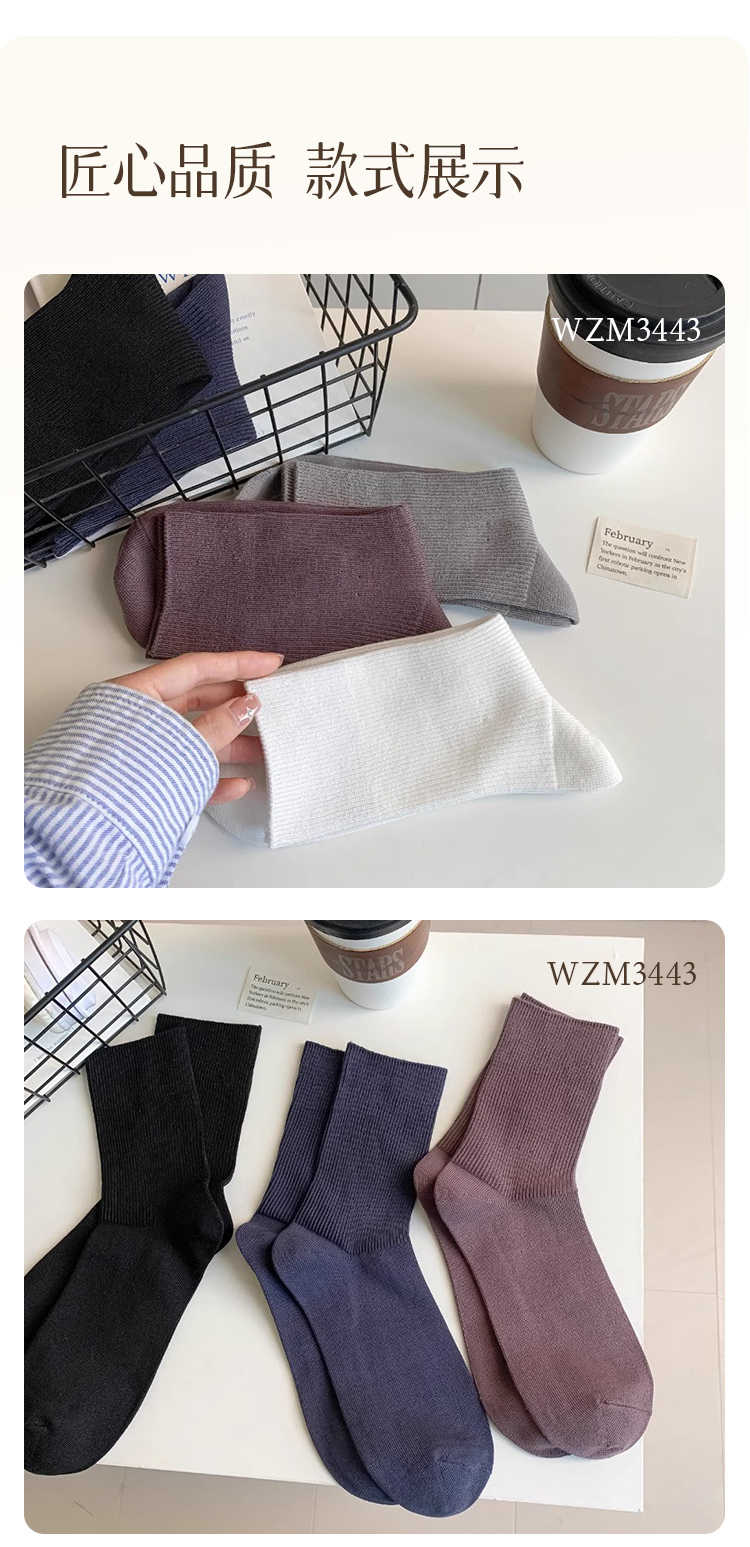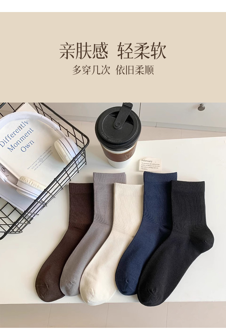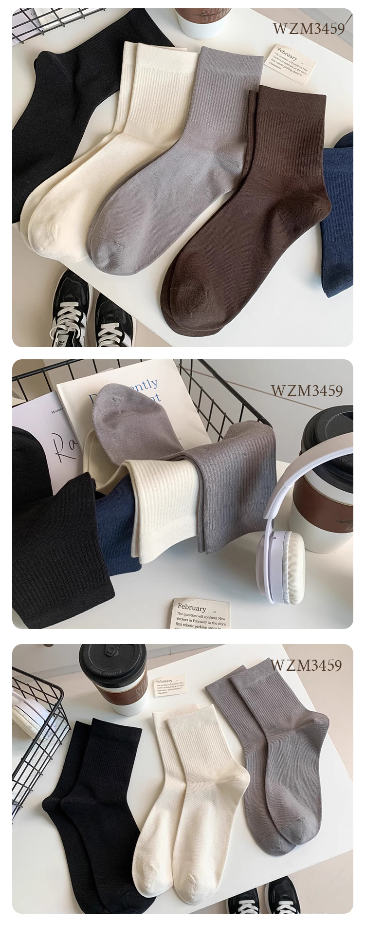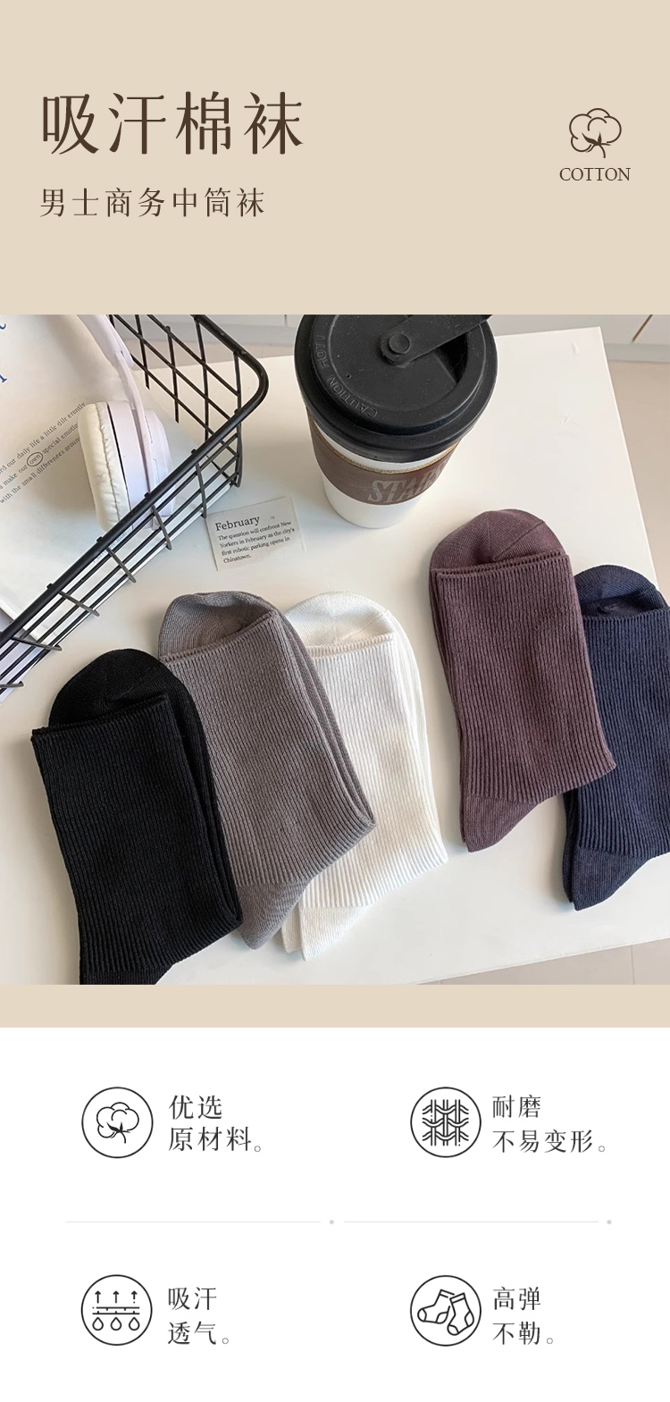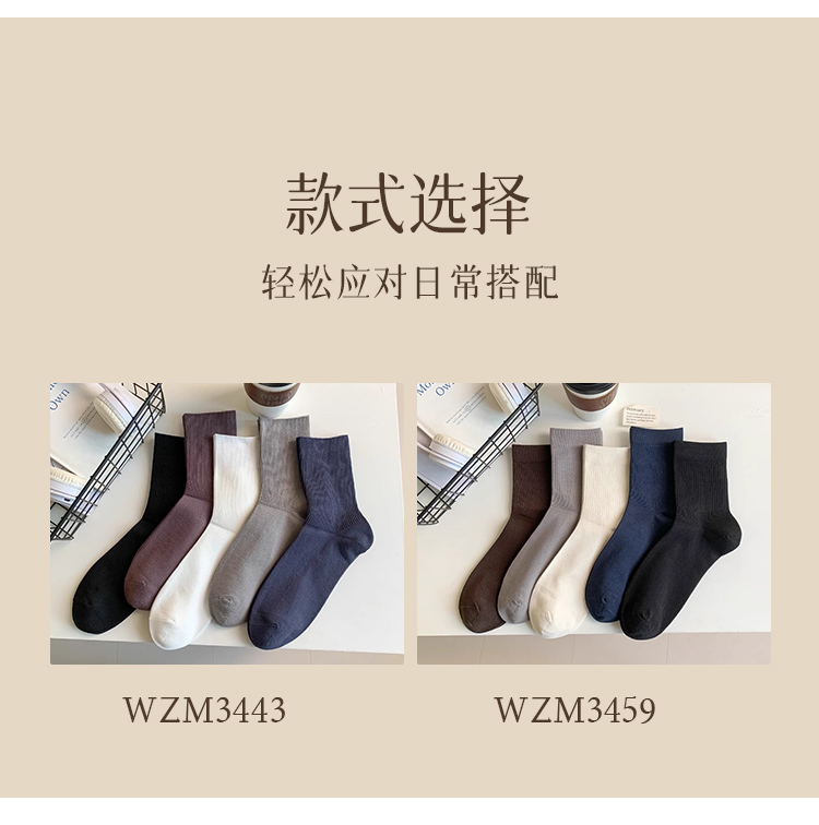 【39元5双,下单拍5】棉袜子吸汗透气纯色商务简约男士男款中筒袜WZM3443WZM3459