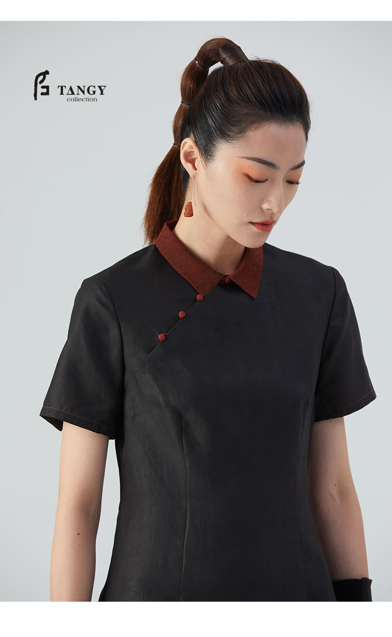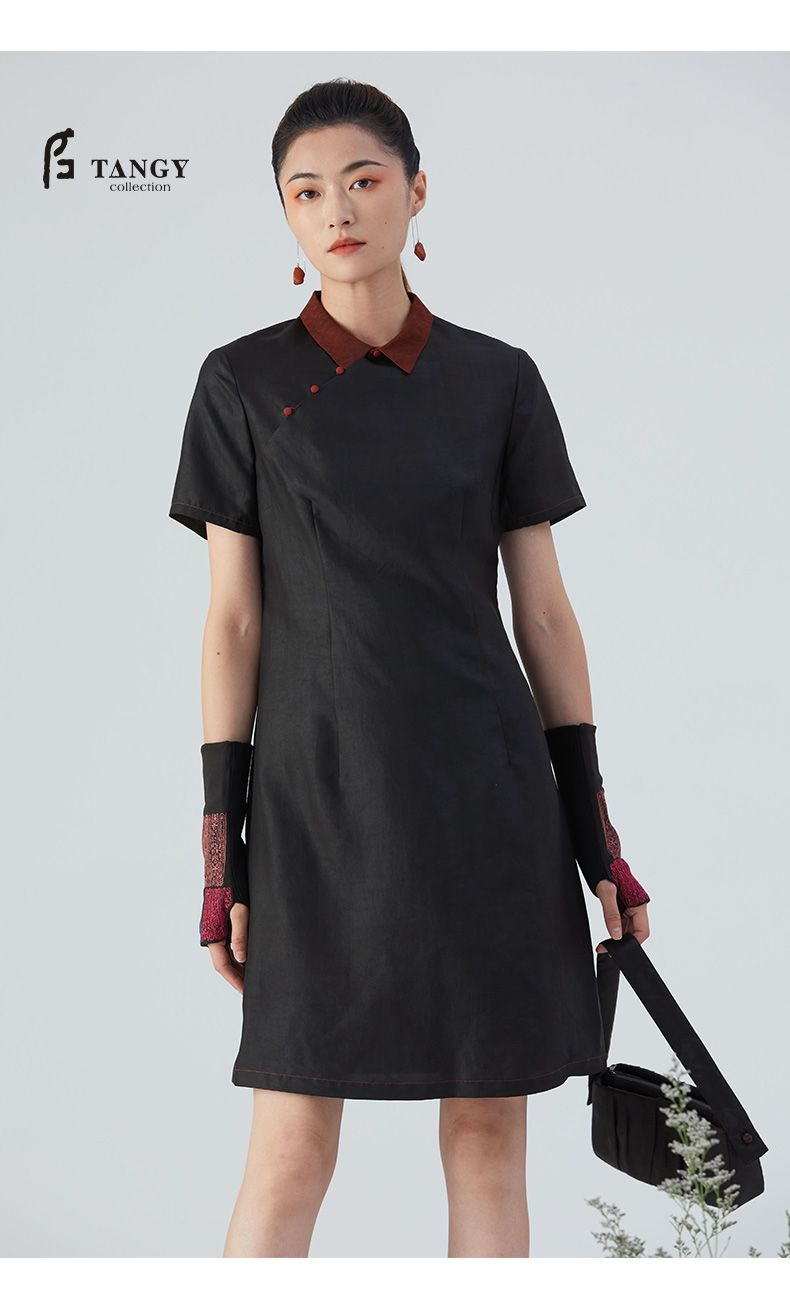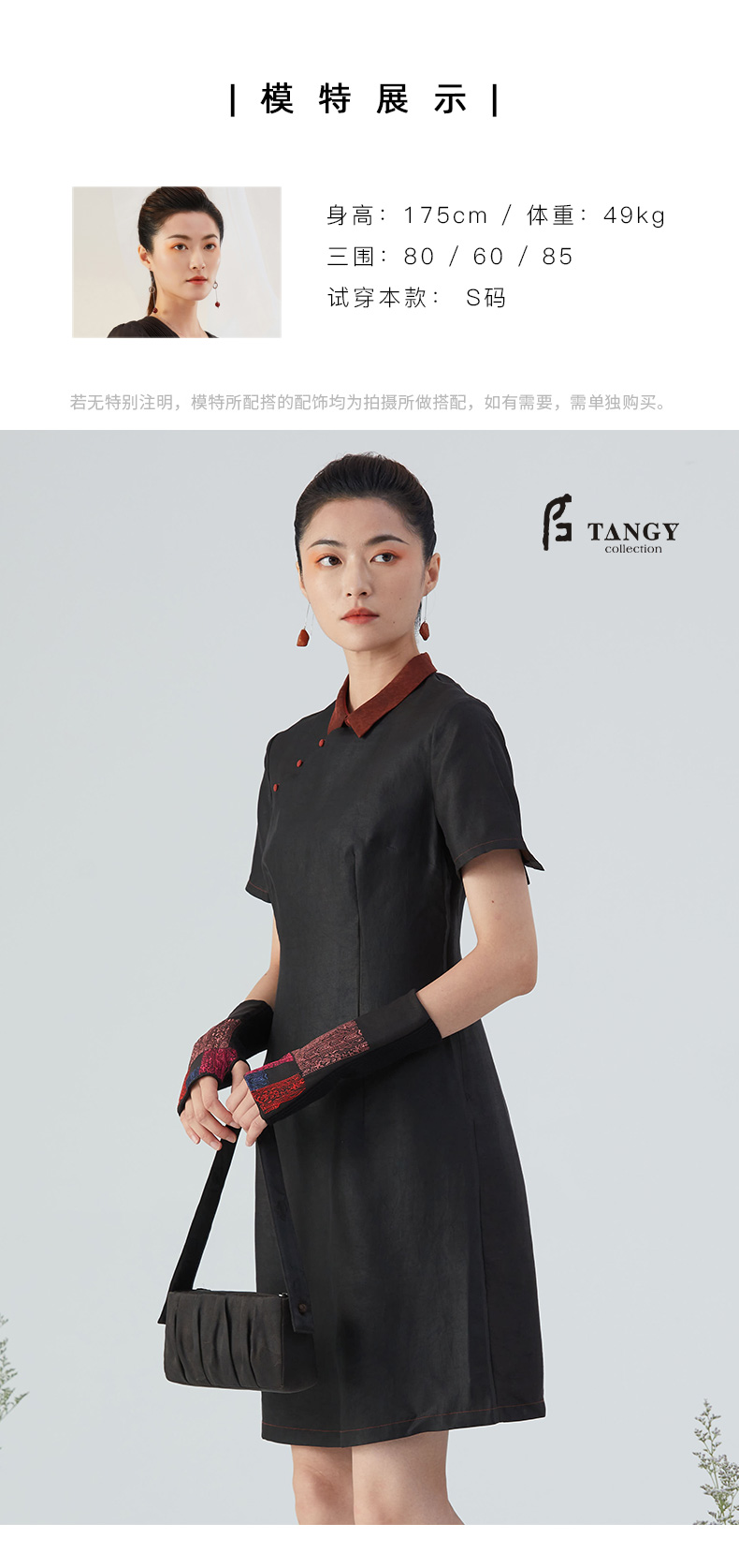 TANGY Collection/天意精品2021年秋冬新品真丝莨绸香云纱连衣裙