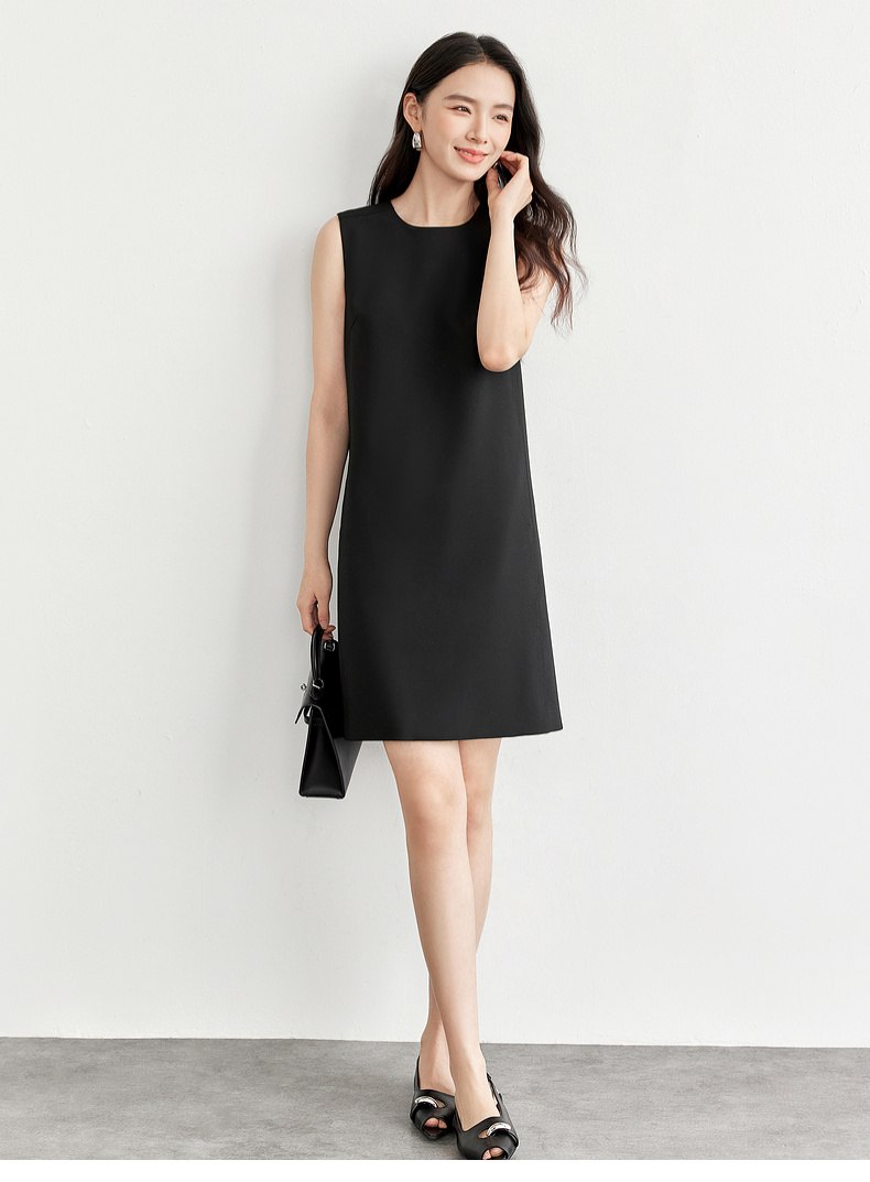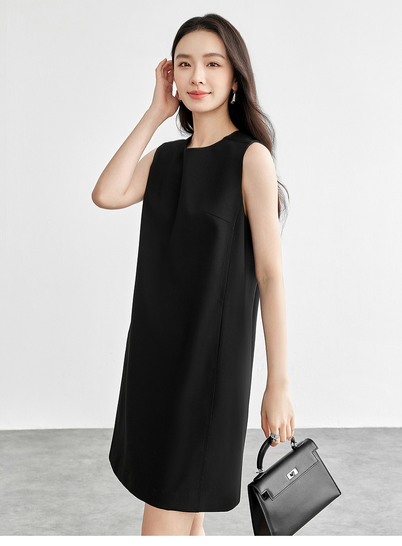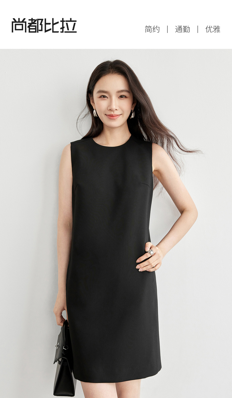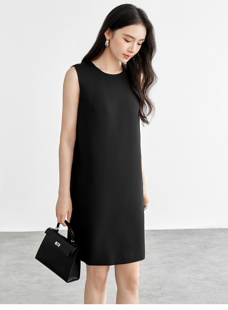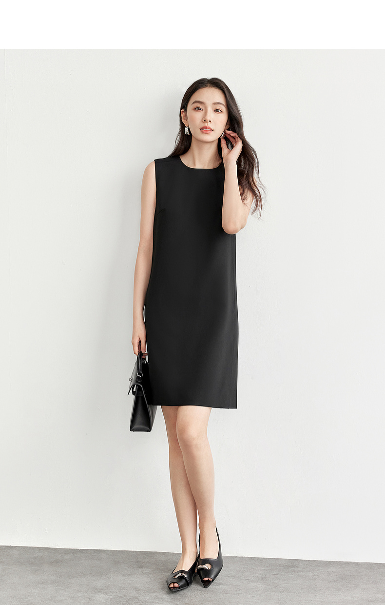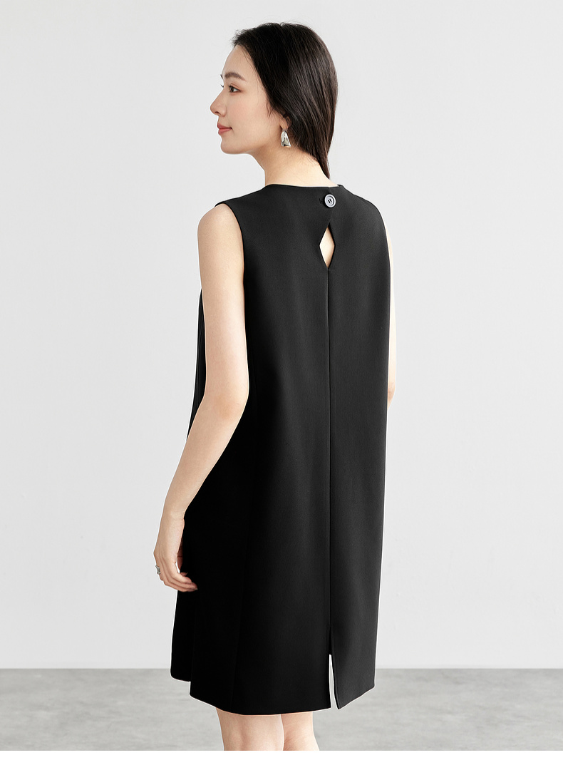 【内购】经典赫本风小黑裙套头圆领隐形插袋后背镂空无袖连衣裙-151L57830