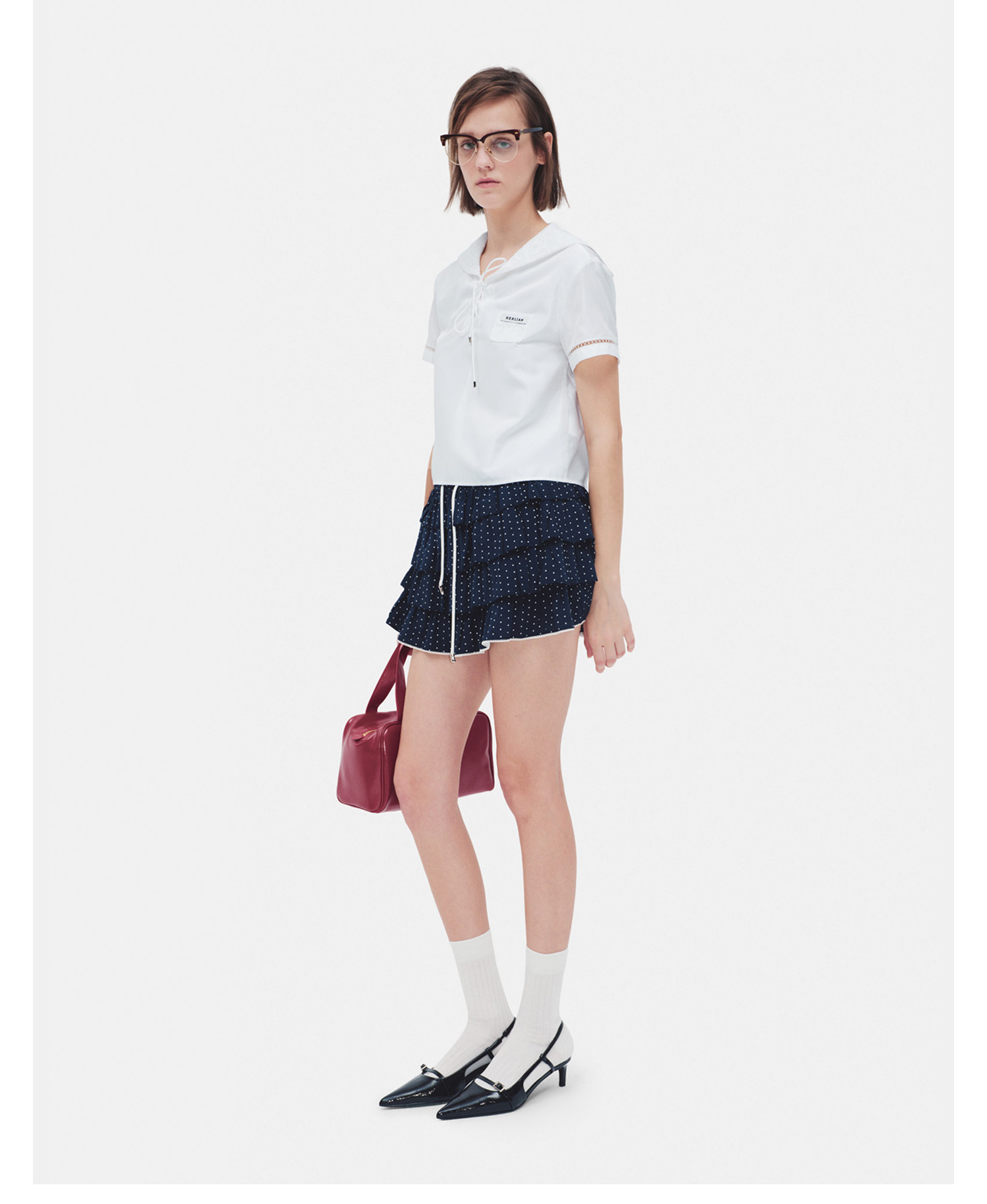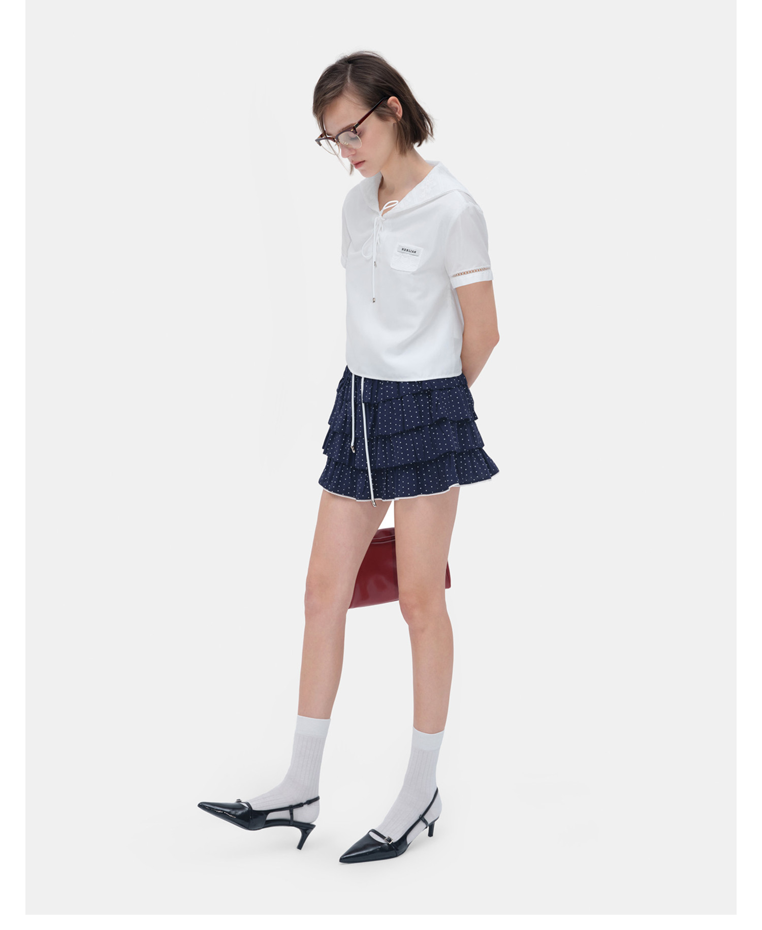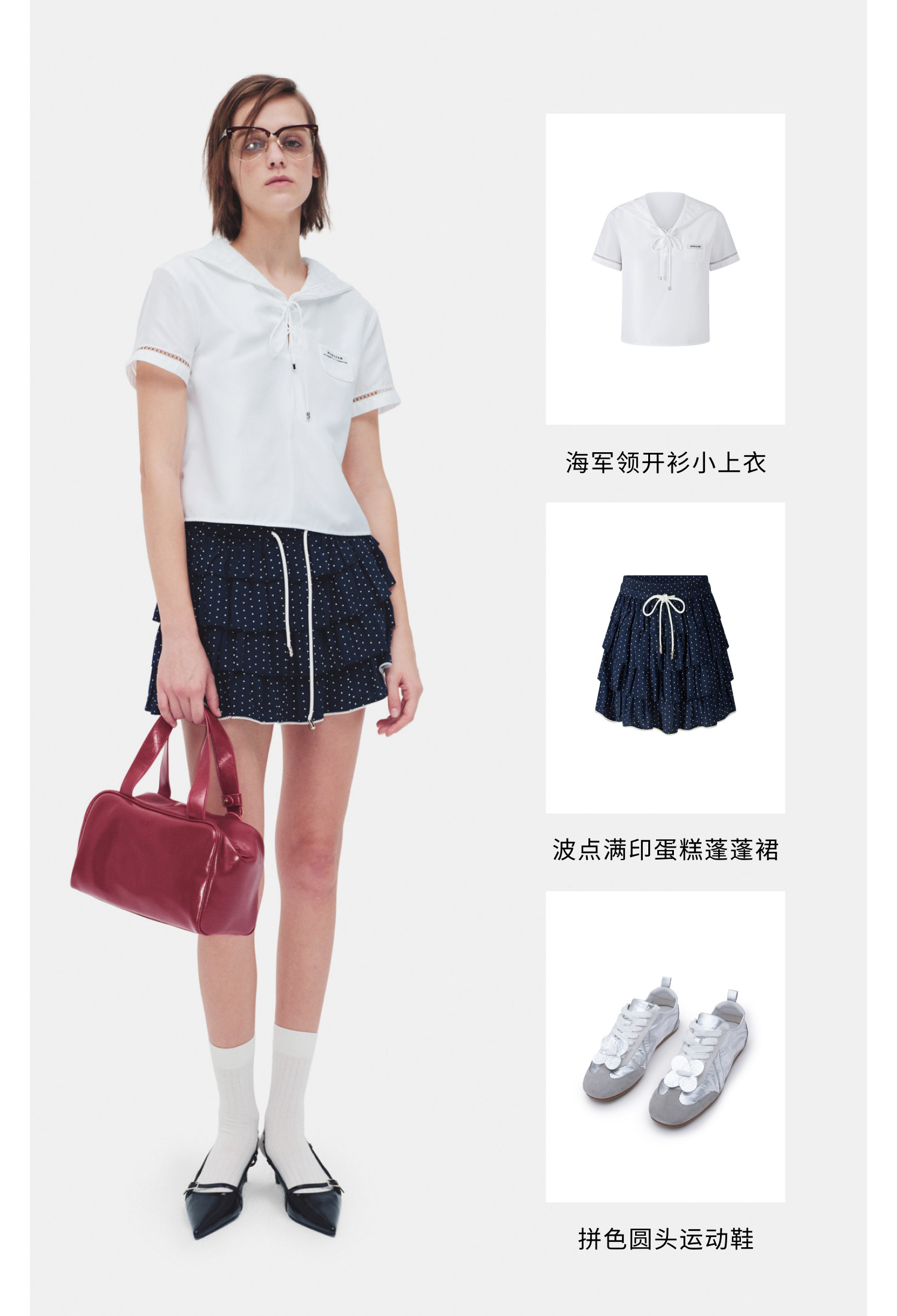 HERLIAN 2026年夏季新品海军领开衫小上衣女士学院风短袖衬衫