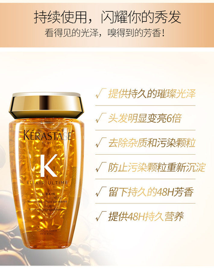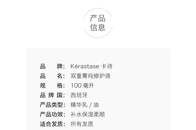KERASTASE 卡诗 双重菁纯润泽洗发水 250毫升 滋润发丝/ 双重免洗菁纯修护液护发精油 100毫升【适用所有发质】