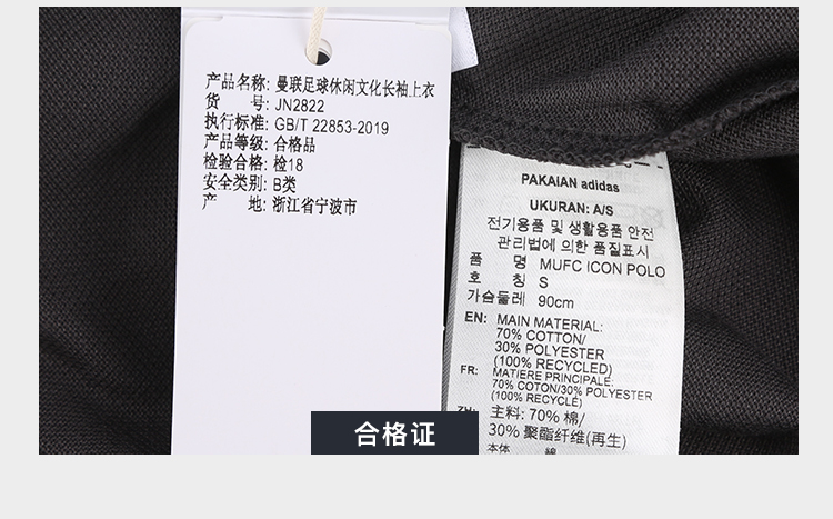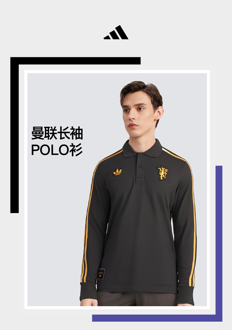 小李子ADIDAS阿迪达斯曼联足球休闲文化长袖POLO衫成人男JN2822