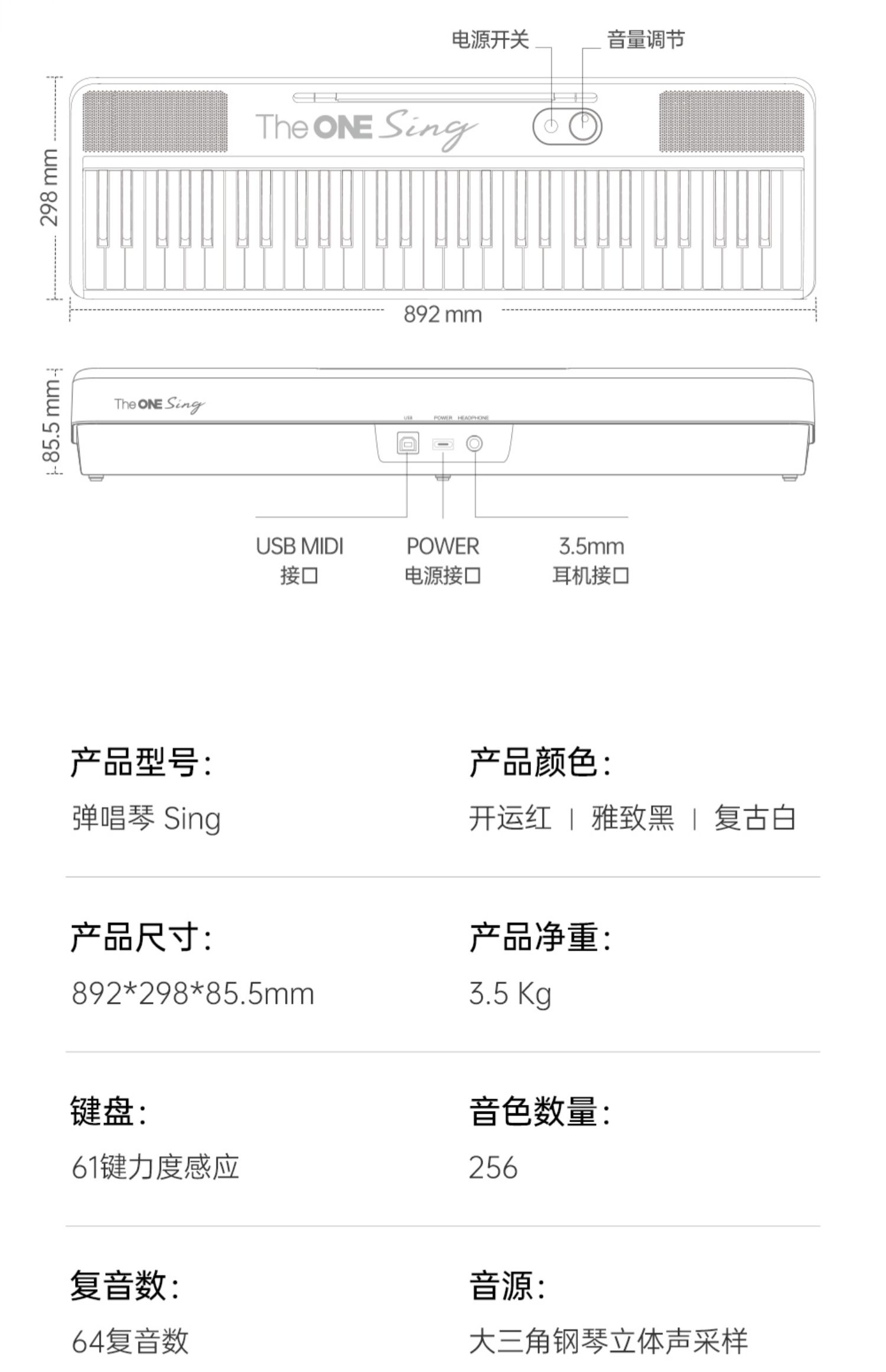 TheONE 弹唱琴Sing自动挡智能钢琴初学者成年人61键便携式