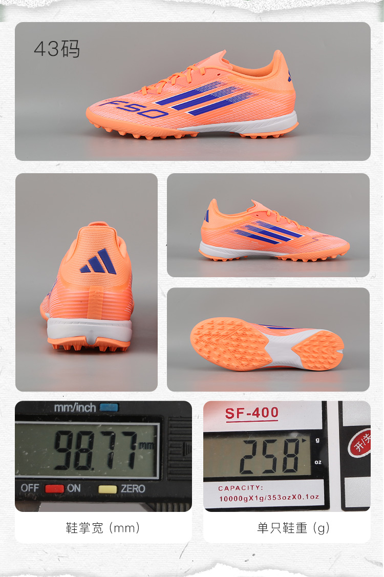 小李子ADIDAS阿迪达斯 F50中端TF碎钉成人运动训练足球鞋男JH7723