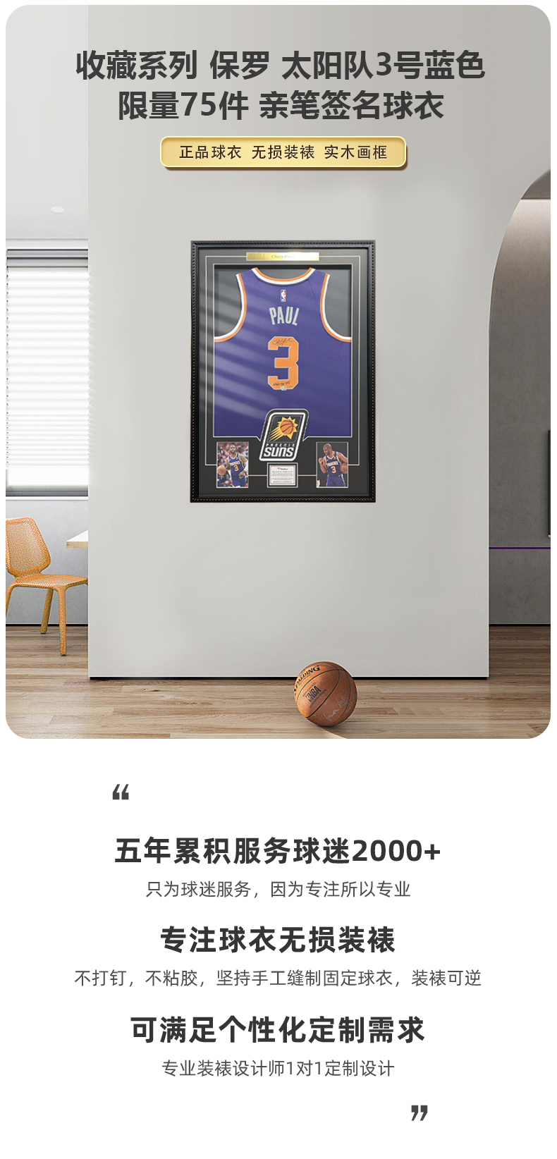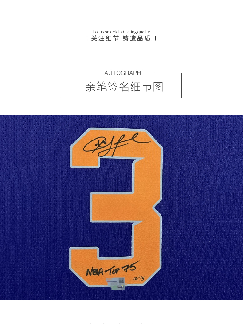 收藏系列 保罗 太阳队3号蓝色 限量75件 亲笔签名球衣