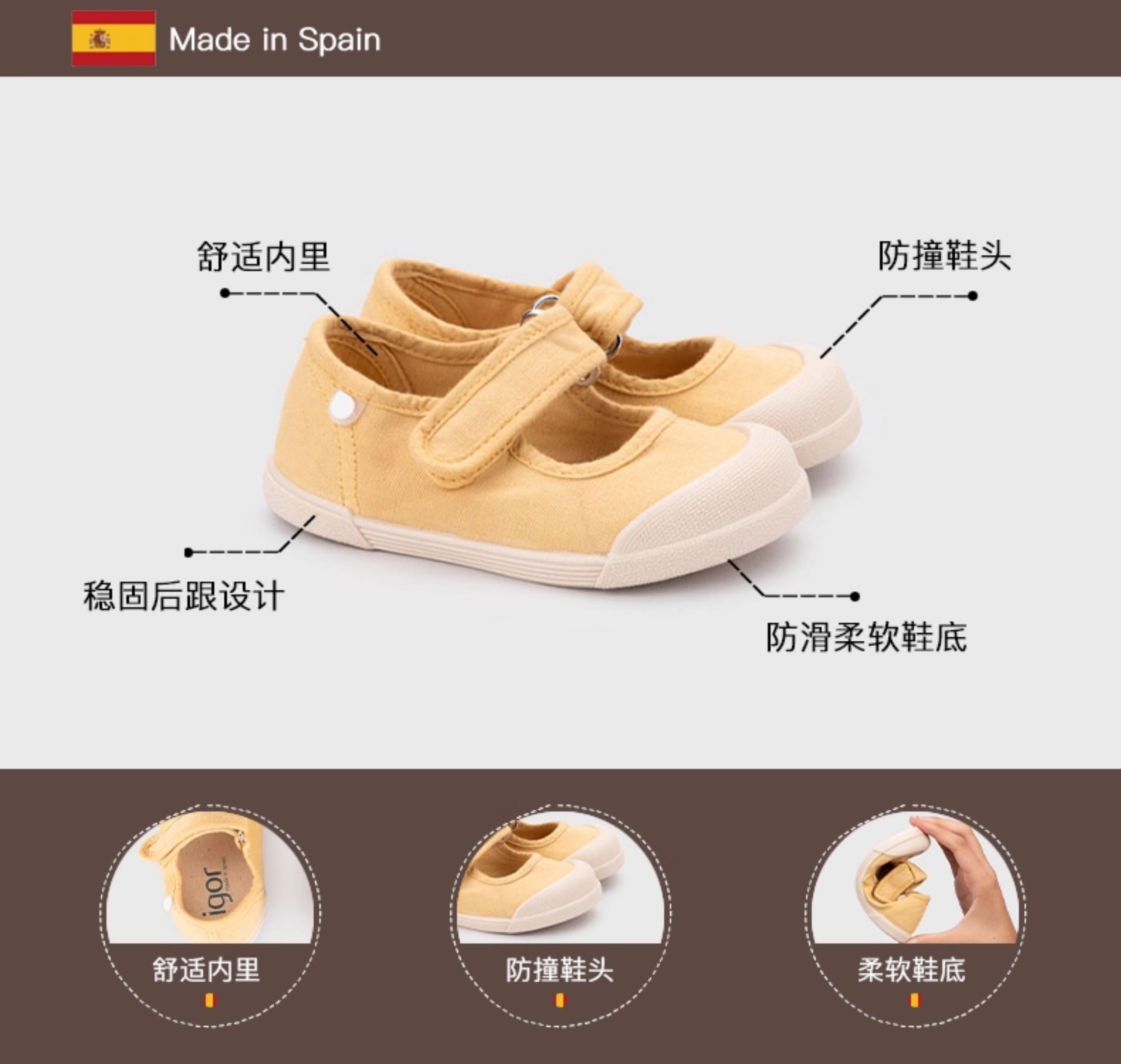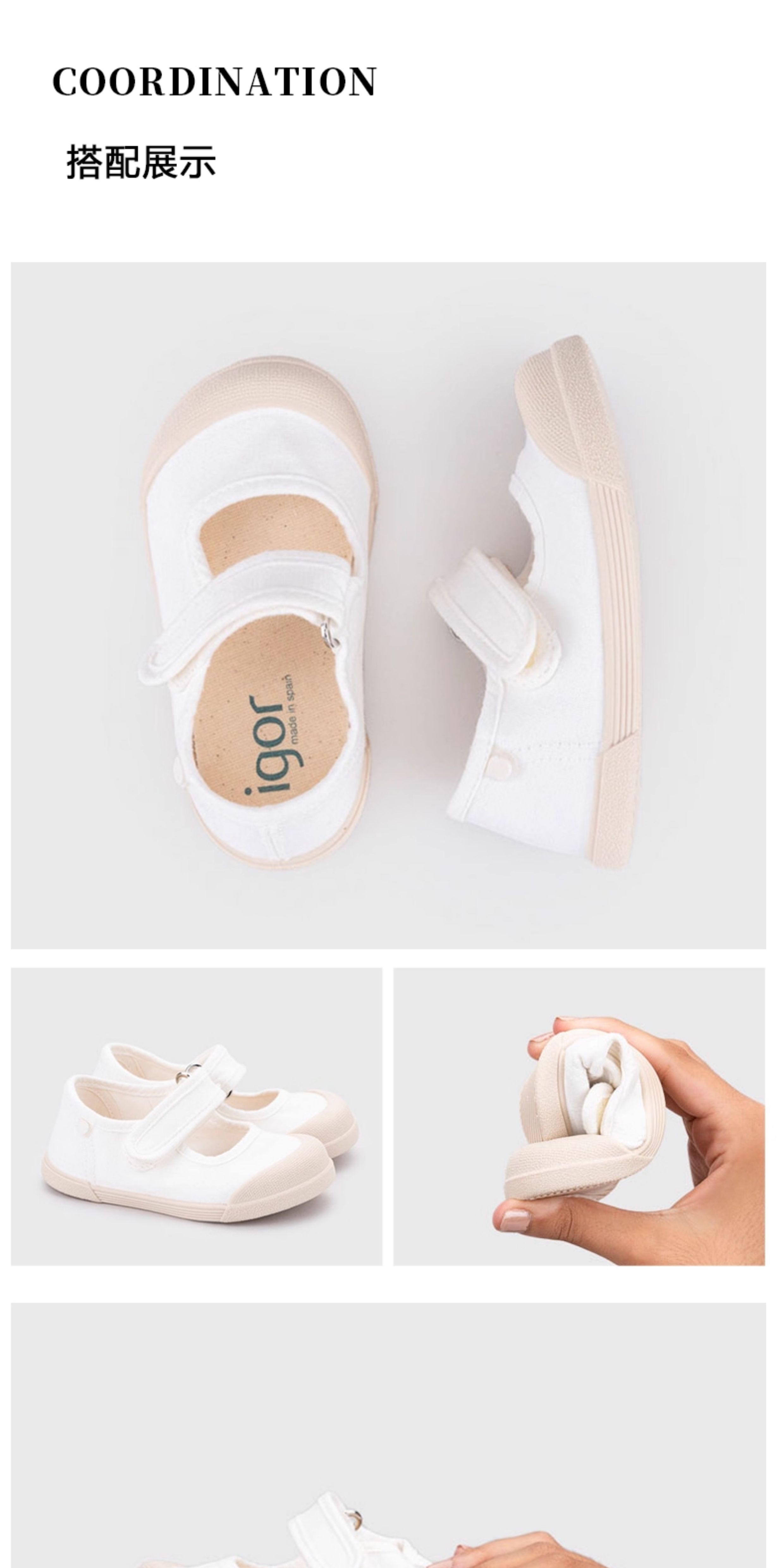igor 26SS新款 西班牙进口春夏儿童玛丽珍帆布鞋T字魔术贴一脚蹬