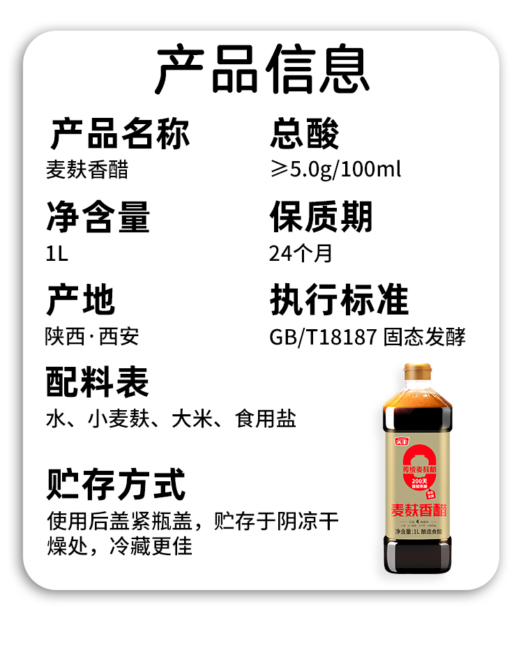 天丰零添加麦麸香醋1L【单独发货 分包裹寄出】