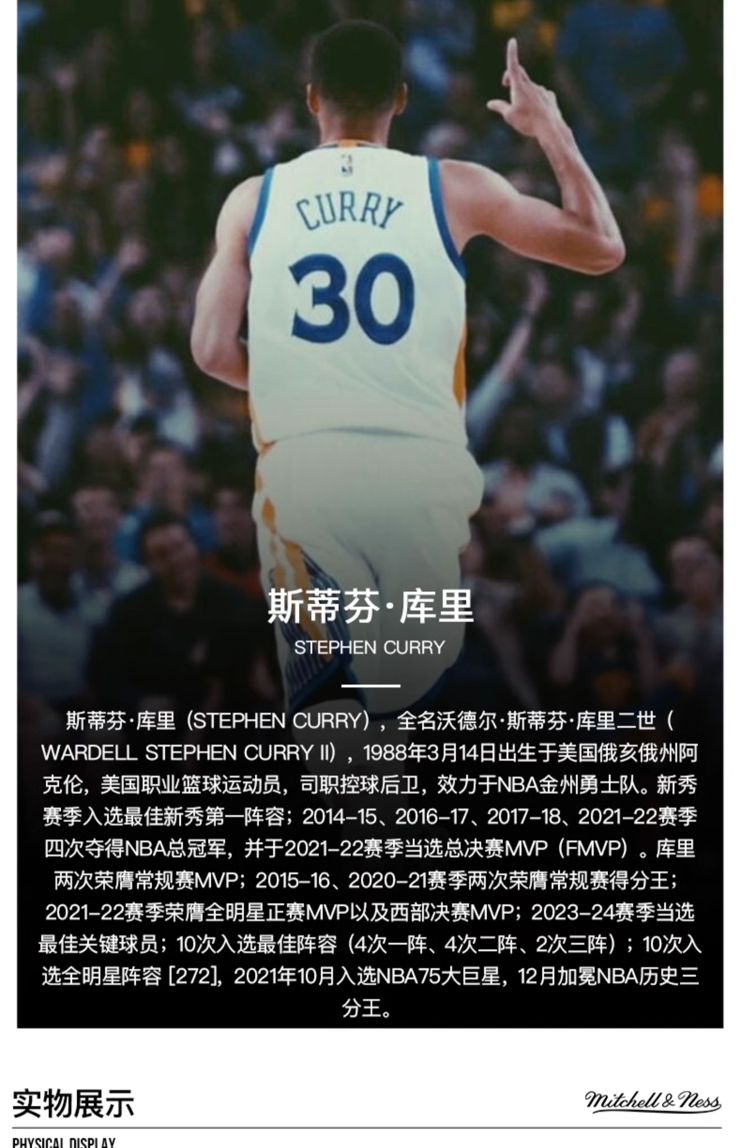 Mitchell&Ness 勇士队 库里 09-10赛季球衣 白色/蓝色