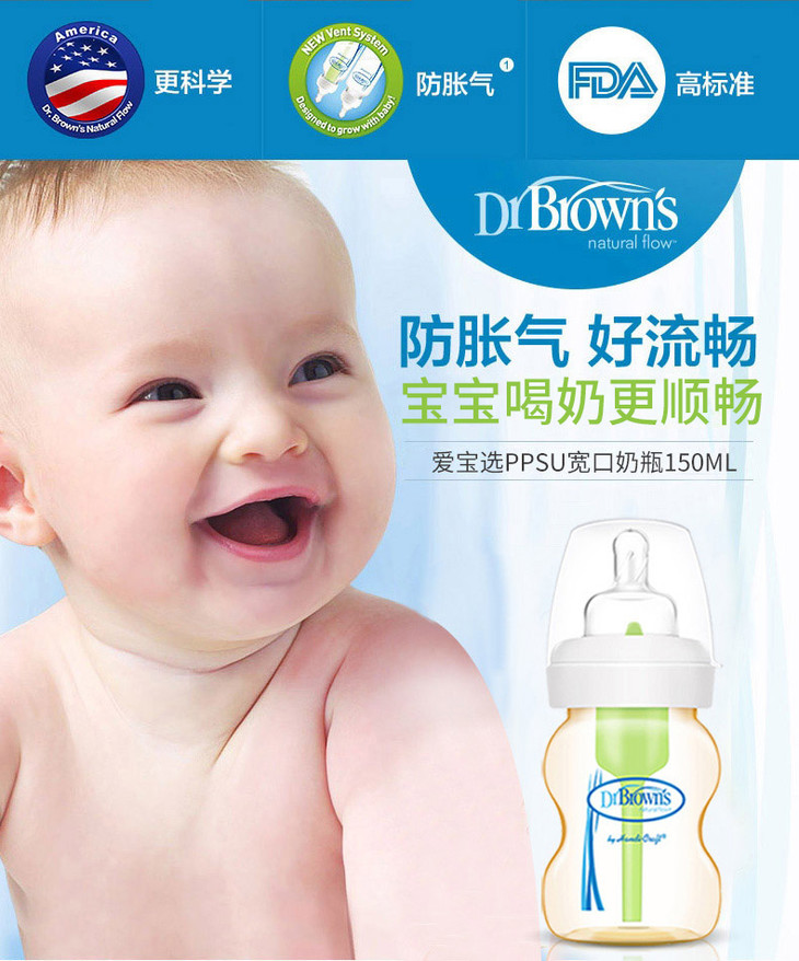 布朗博士爱宝选5安士PPSU宽口婴儿奶瓶WB5110