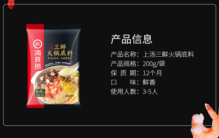 海底捞 三鲜火锅底料 200g(190g+10g)