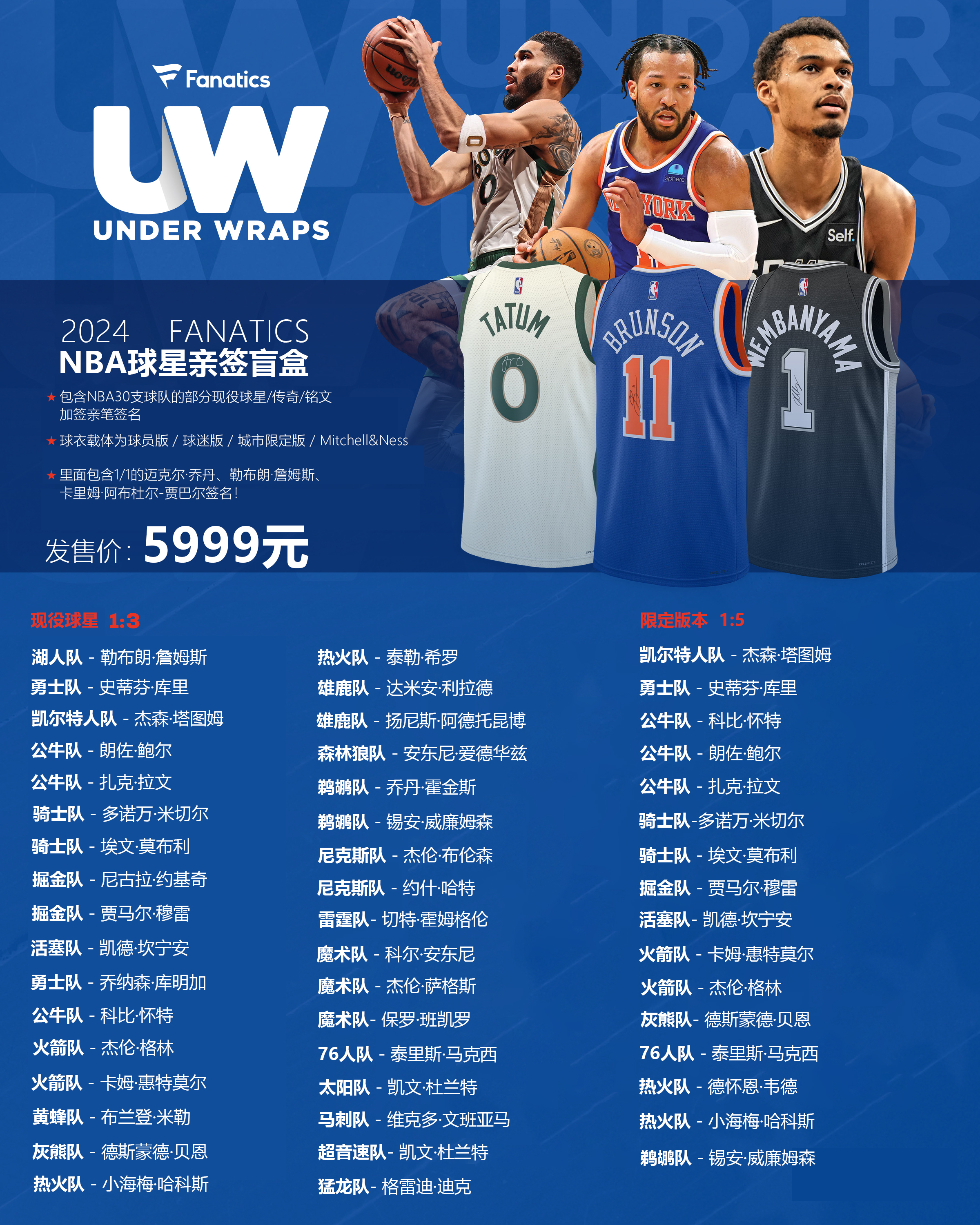 FANATICS 24/25 NBA 亲笔签名球衣盲盒