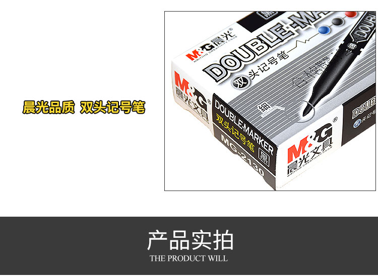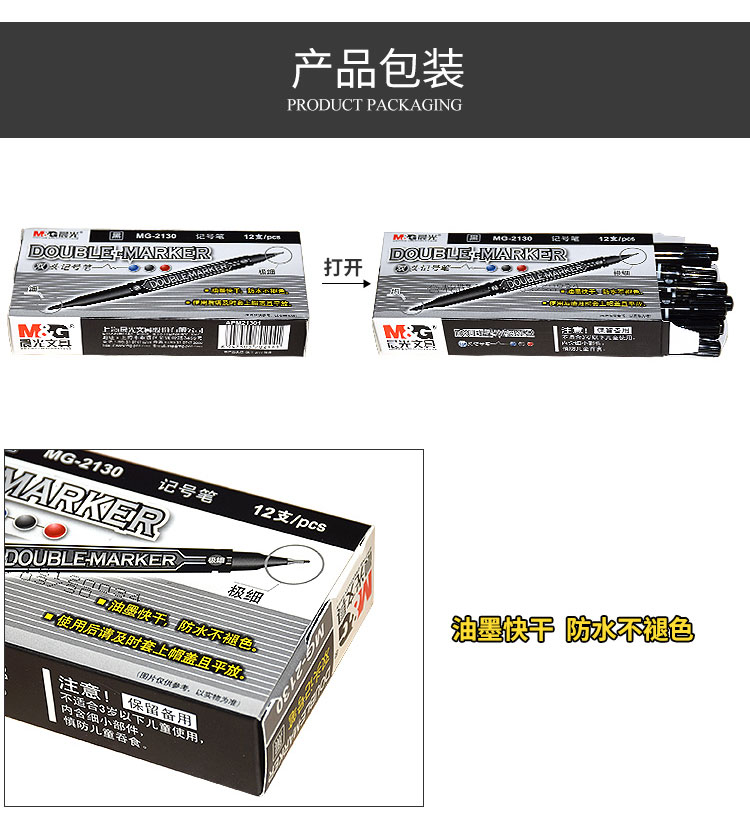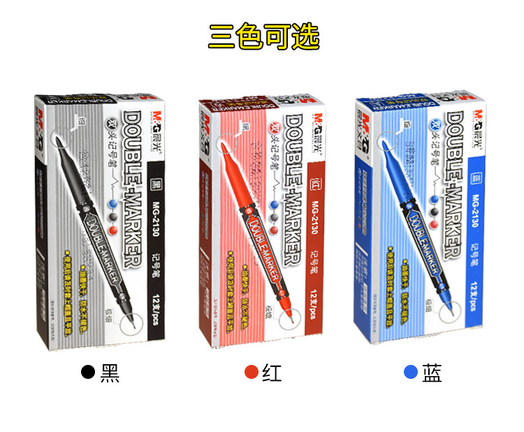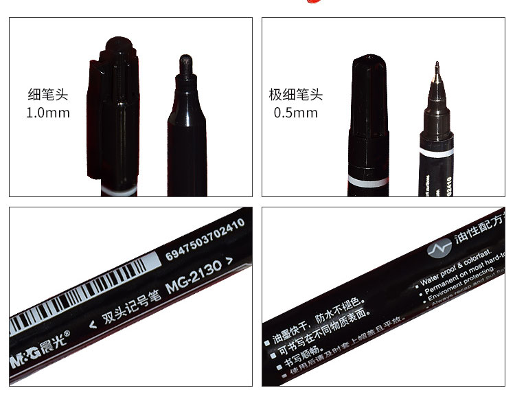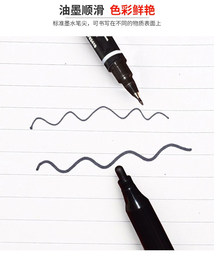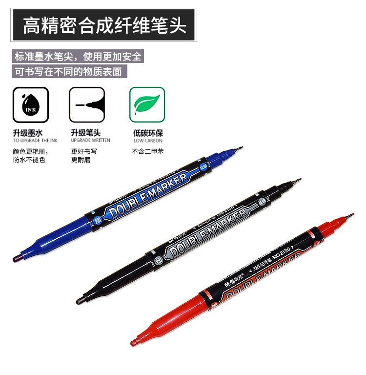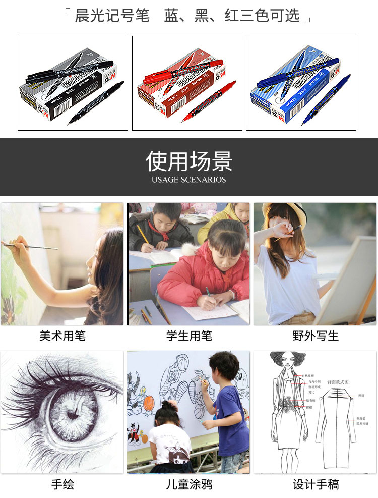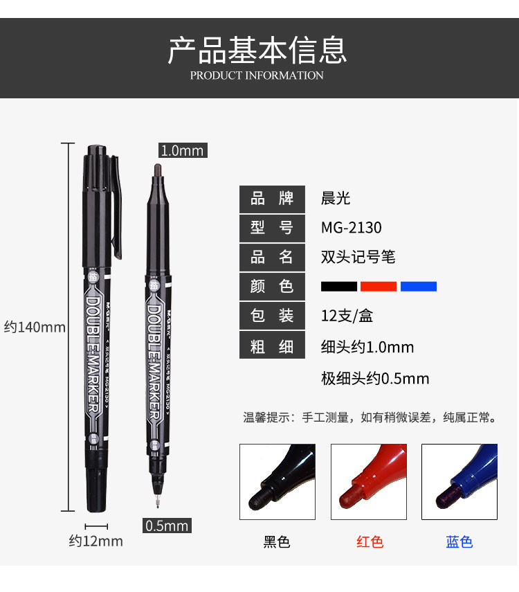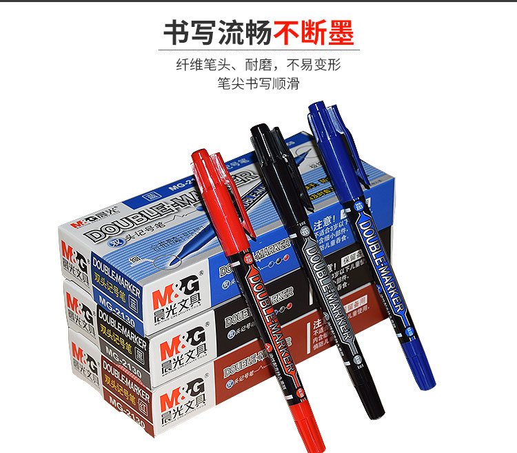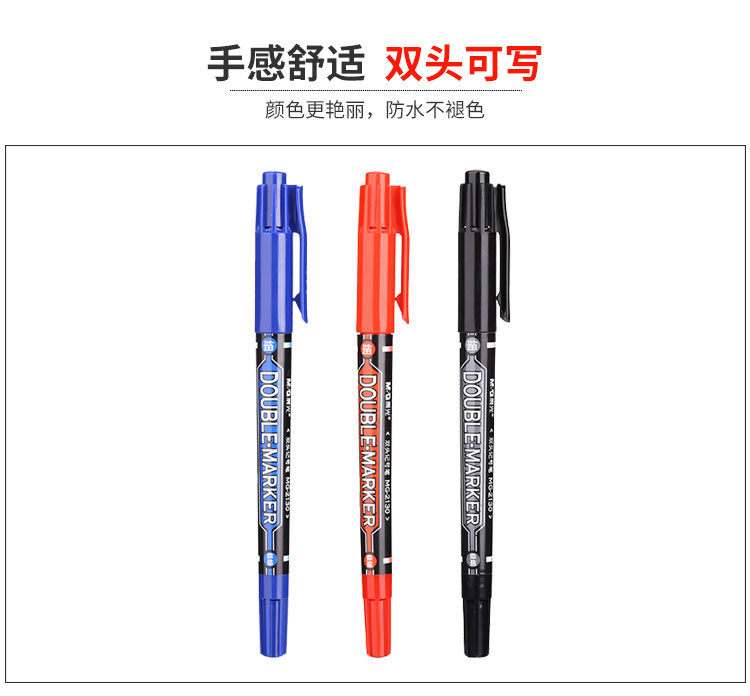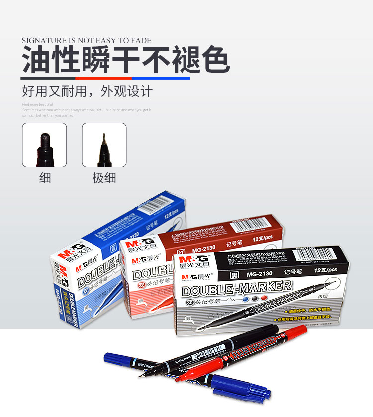 晨光双头记号笔MG2130黑色红细儿童绘画不掉色防水勾线大头油性小双头