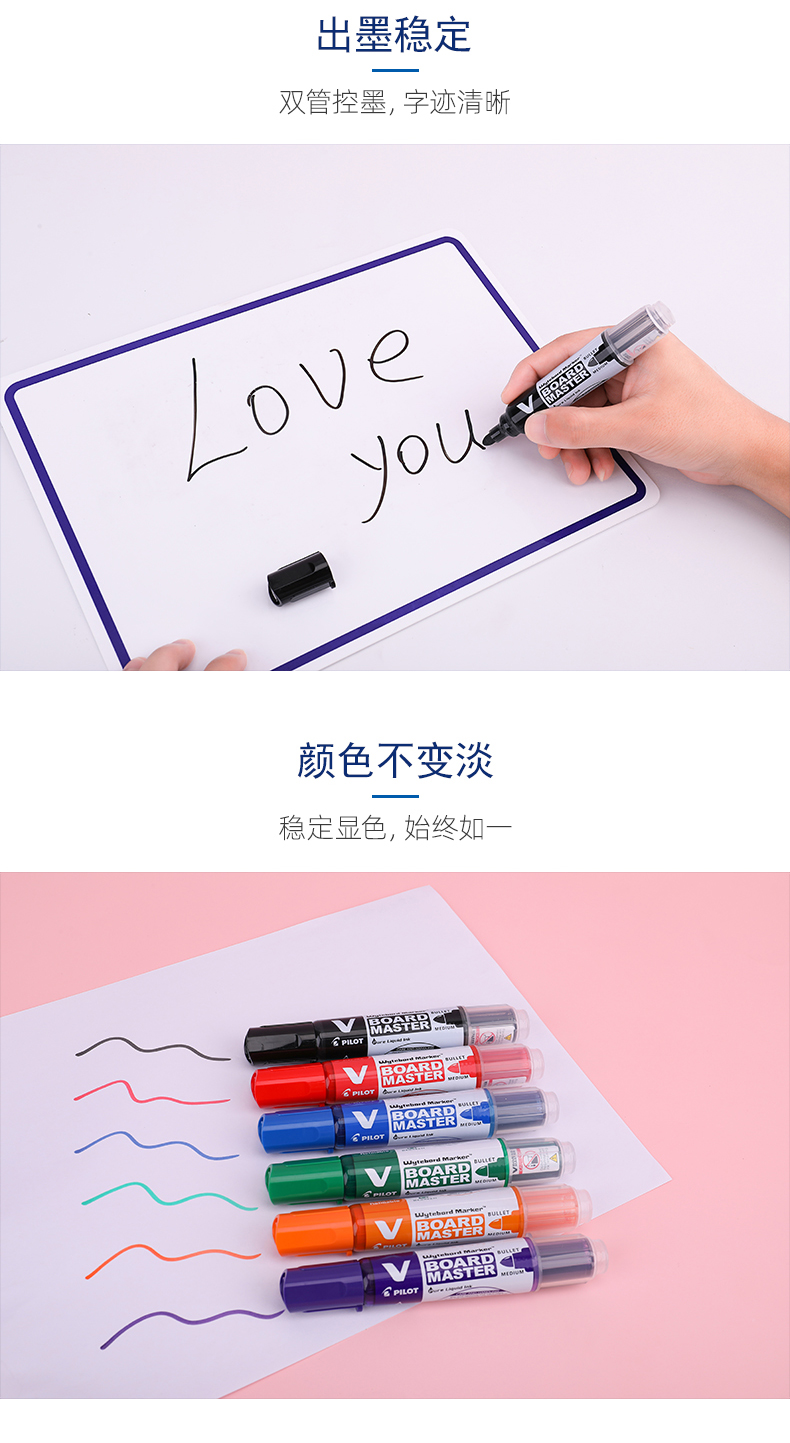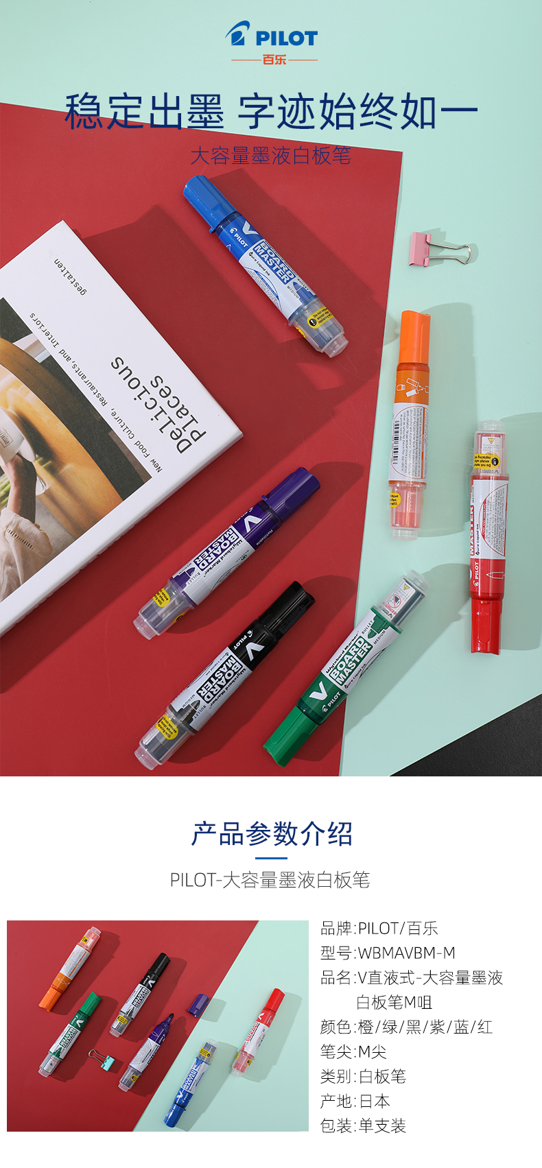 百乐V直液式-大容量墨液白板笔WBMAVBM-M易擦快干会议教学办公