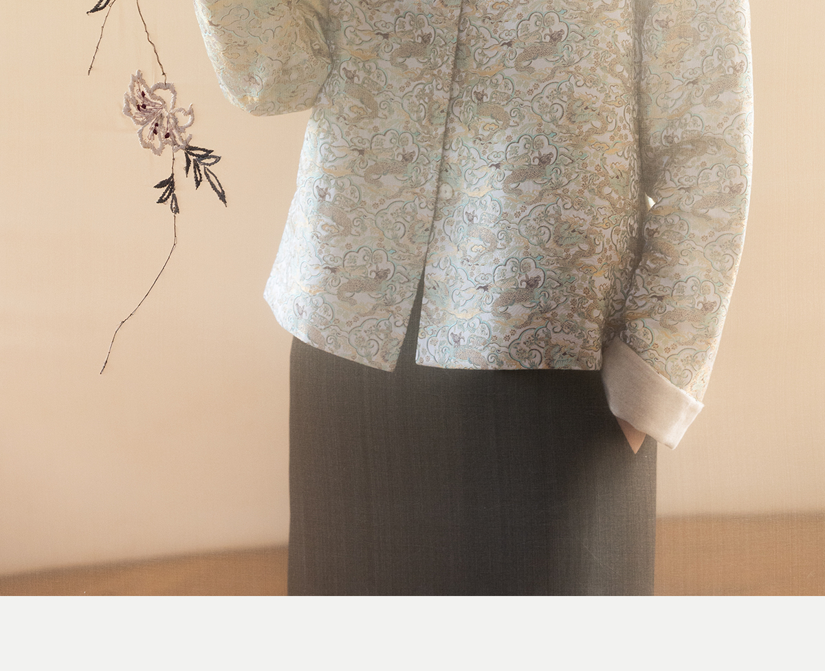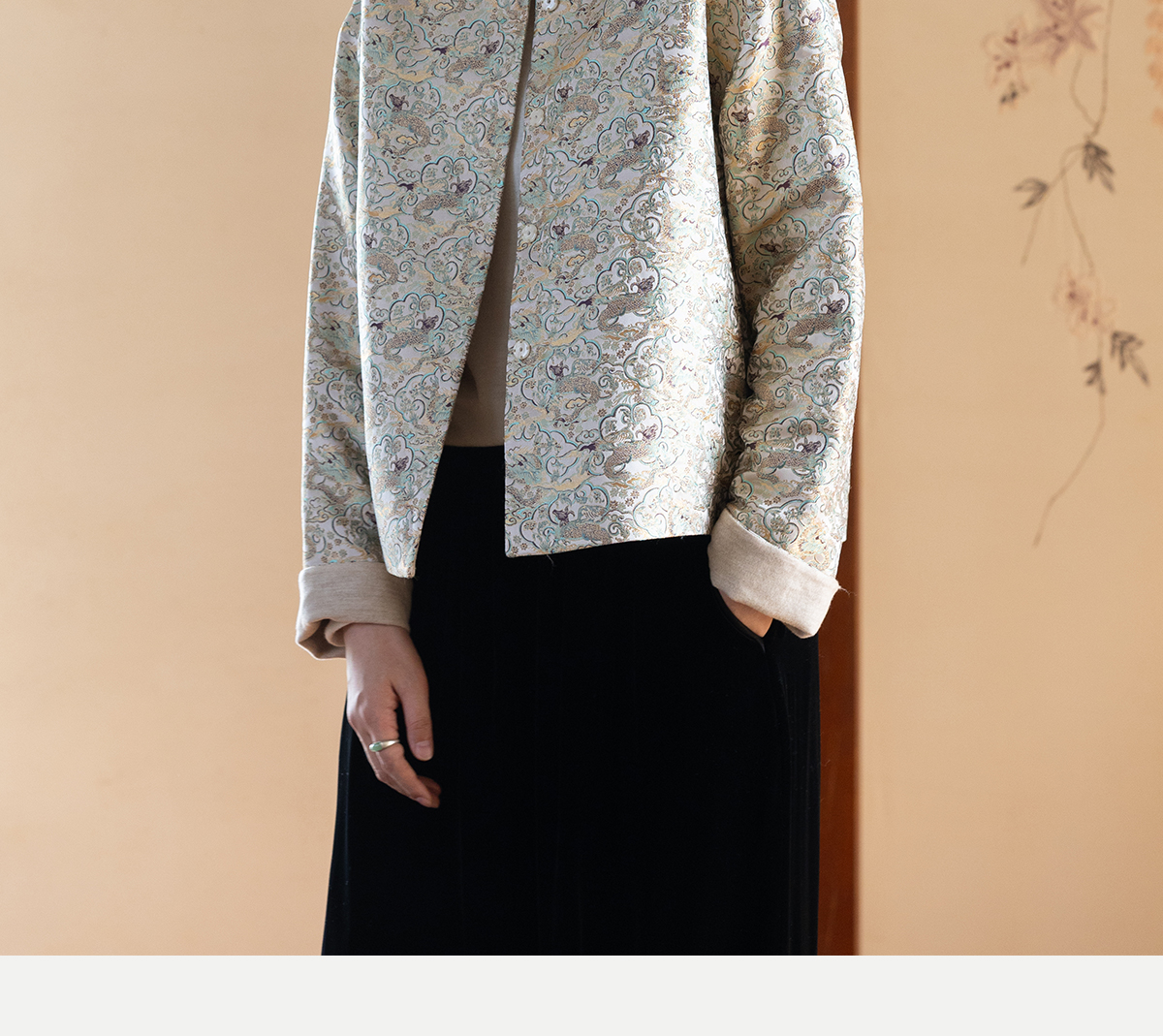 牧衣游原创 牛首龙纹织锦双面穿短外套高端文艺中式开衫 半盏云