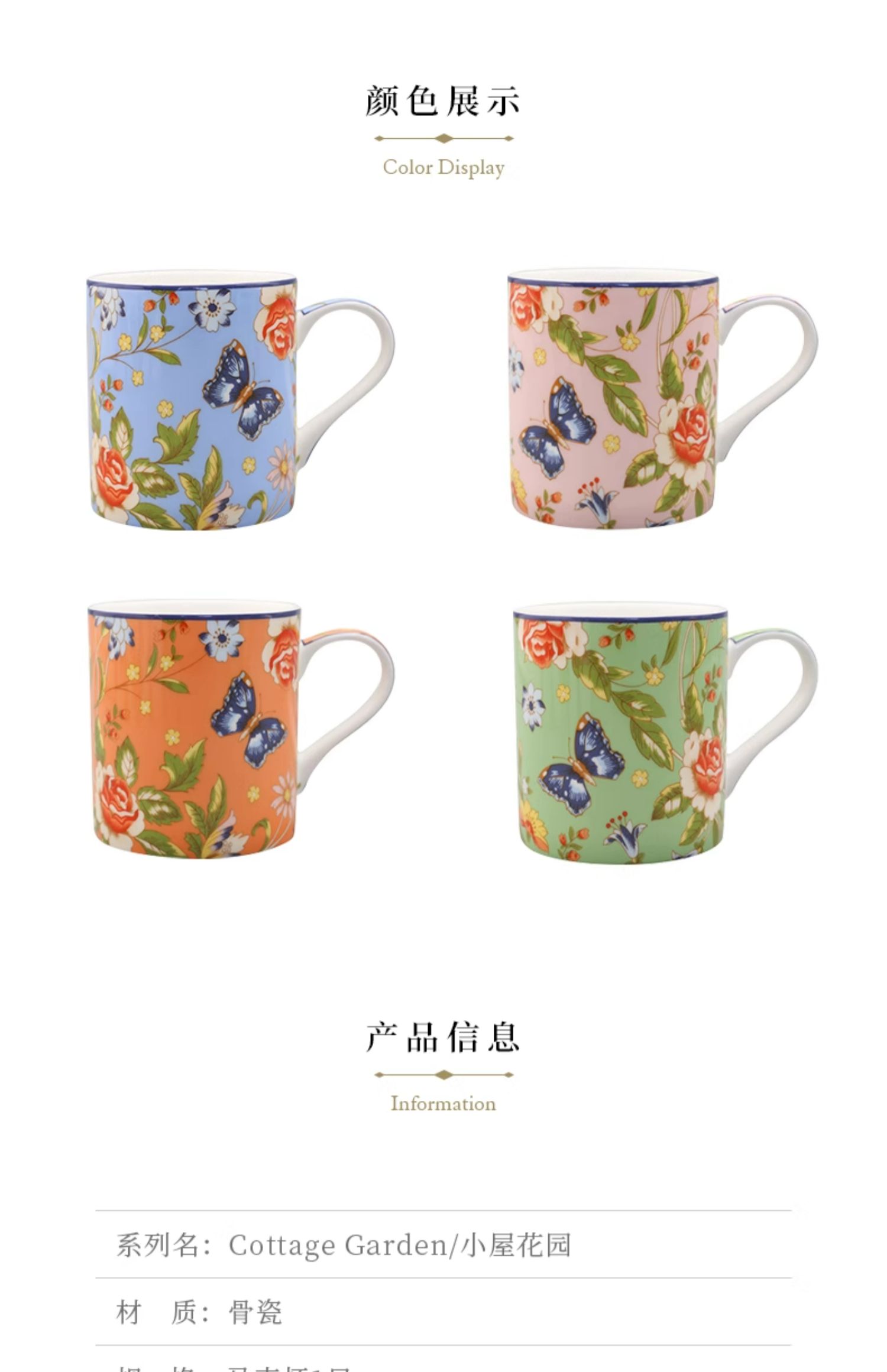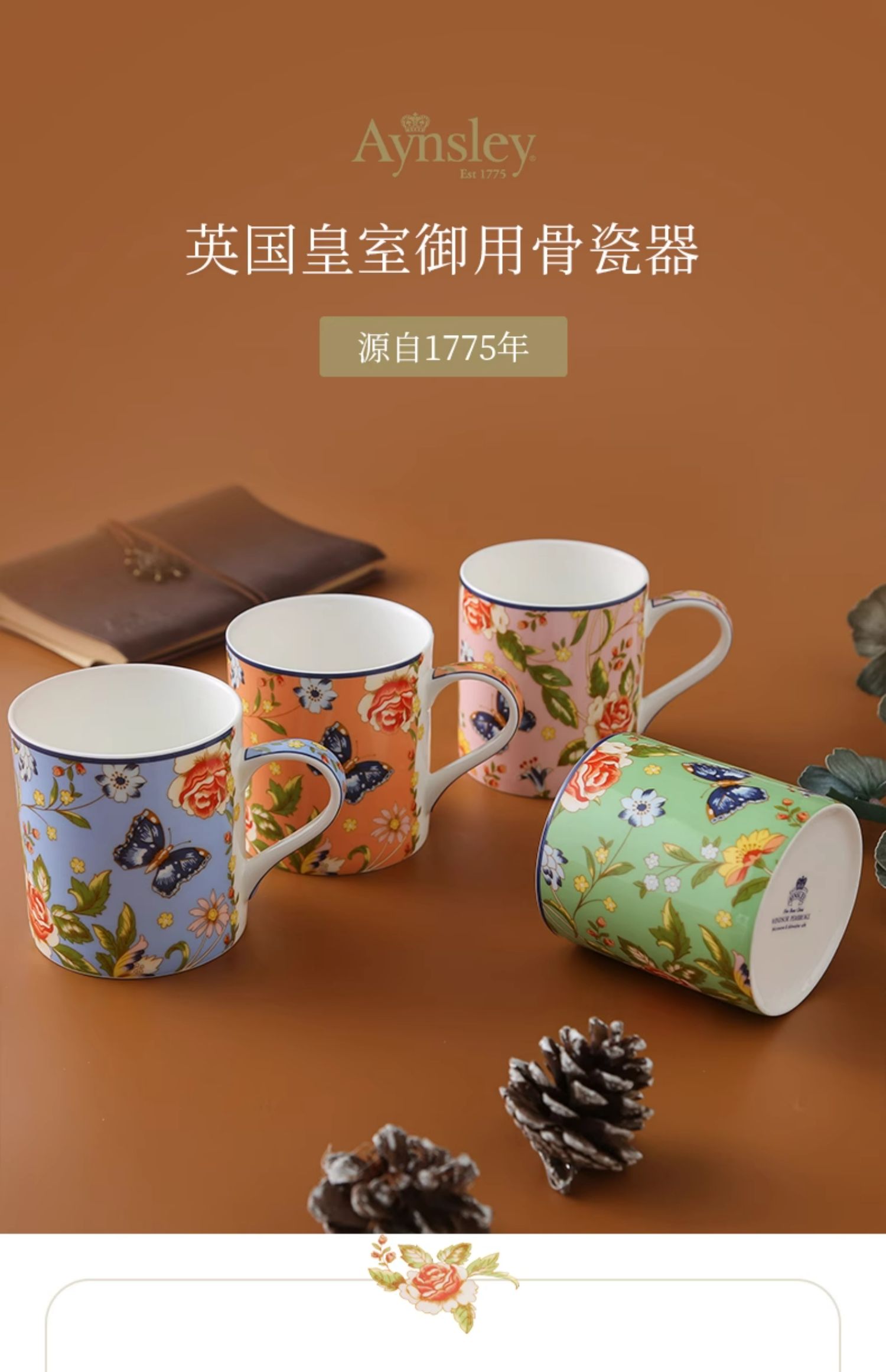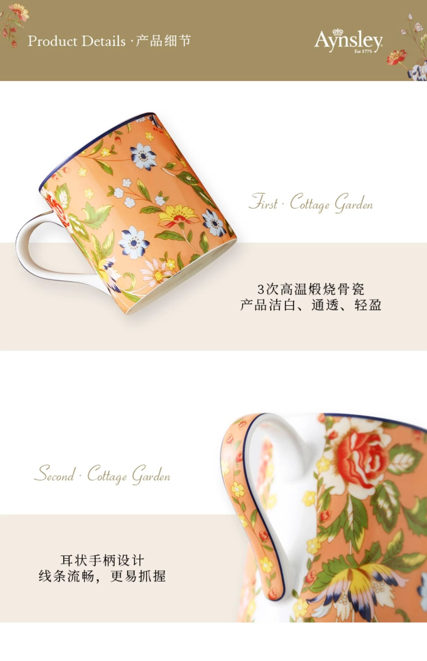 英国Aynsley安斯丽小屋花园家用骨瓷马克杯情侣杯茶杯办公室水杯