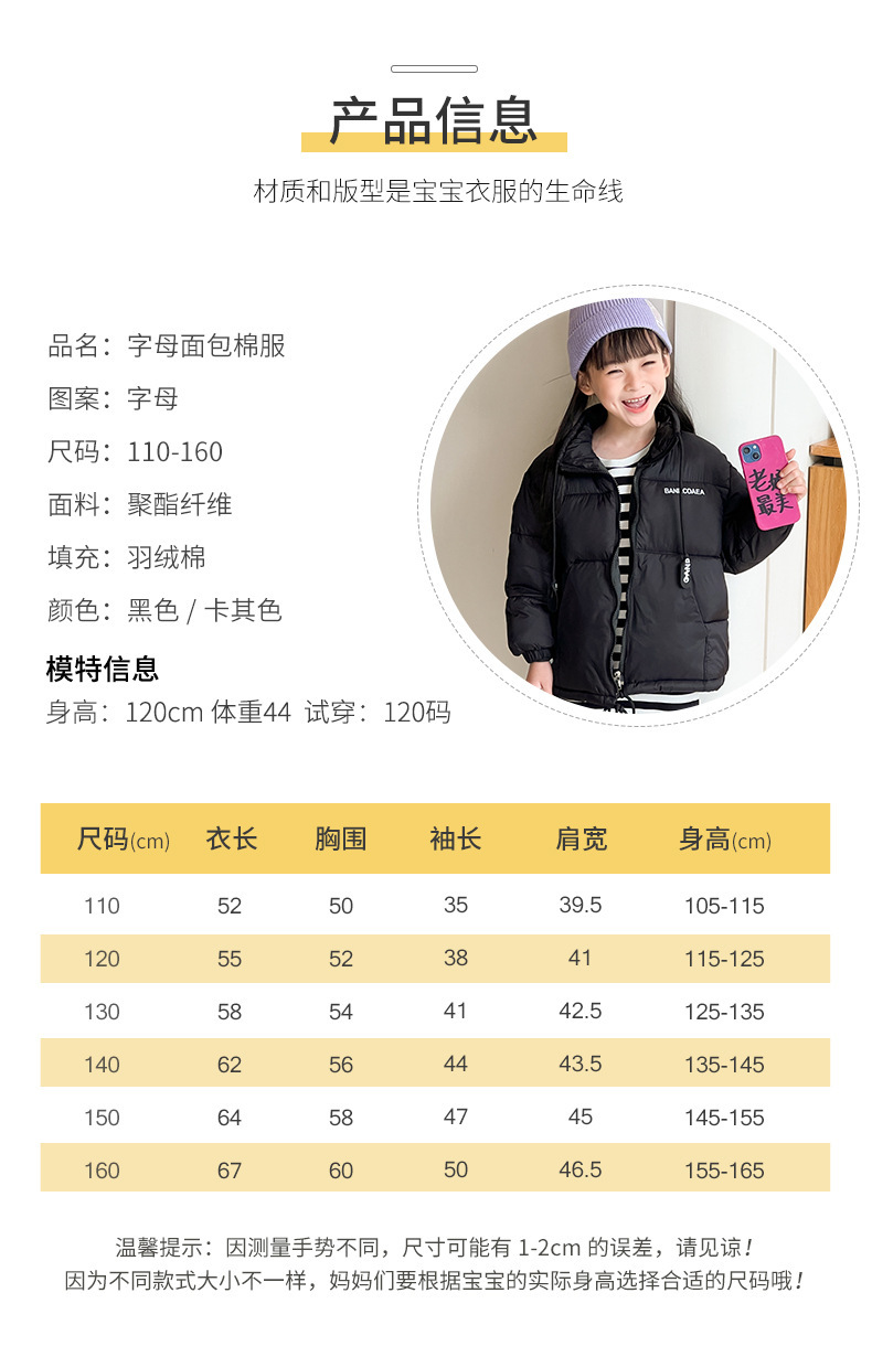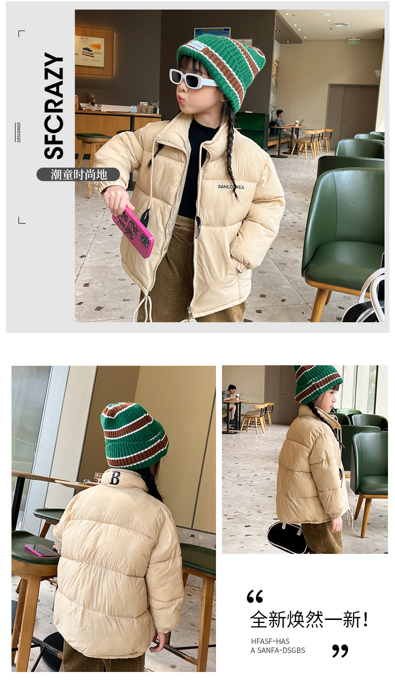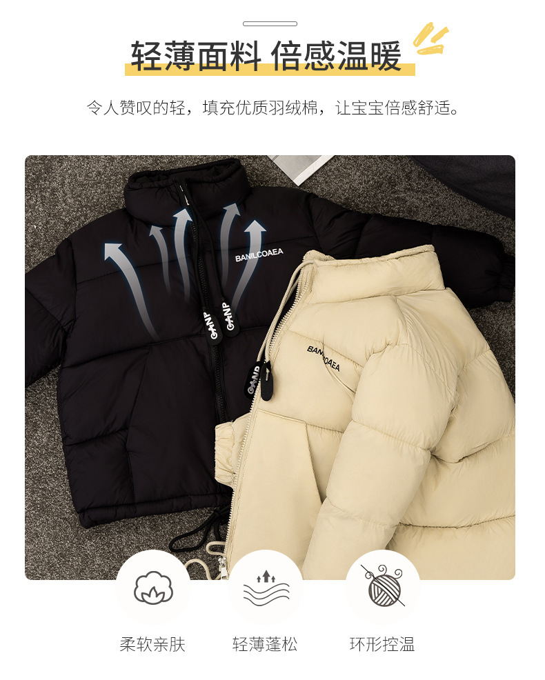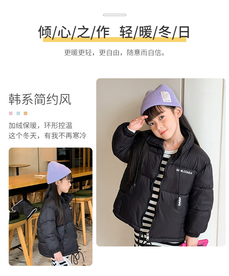 【轻薄面料倍感温暖 超有范!】新款儿童羽绒棉服,娇柔雅致,百搭温暖。萌娃们在寒冬里穿上这件外套面包服,时尚洋气又保暖。新款男女童棉袄洋溢温馨,加厚设计让寒冷远离您的宝贝!