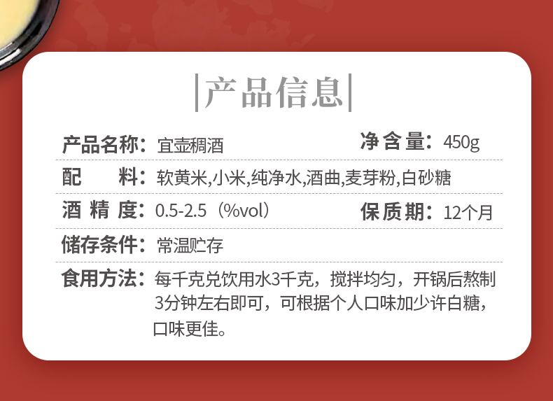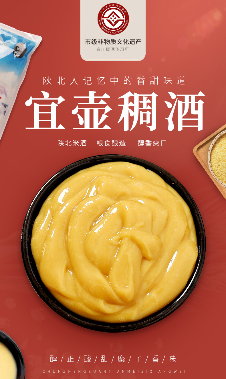 陕西延安宜川宜壶稠酒陕北特产软糜子小糯米麦芽黄米酒450g整箱