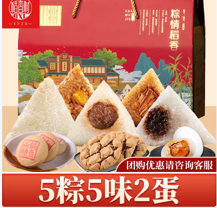 稻香村 咸鸭蛋板栗鲜肉粽糕点粽情稻香820g
