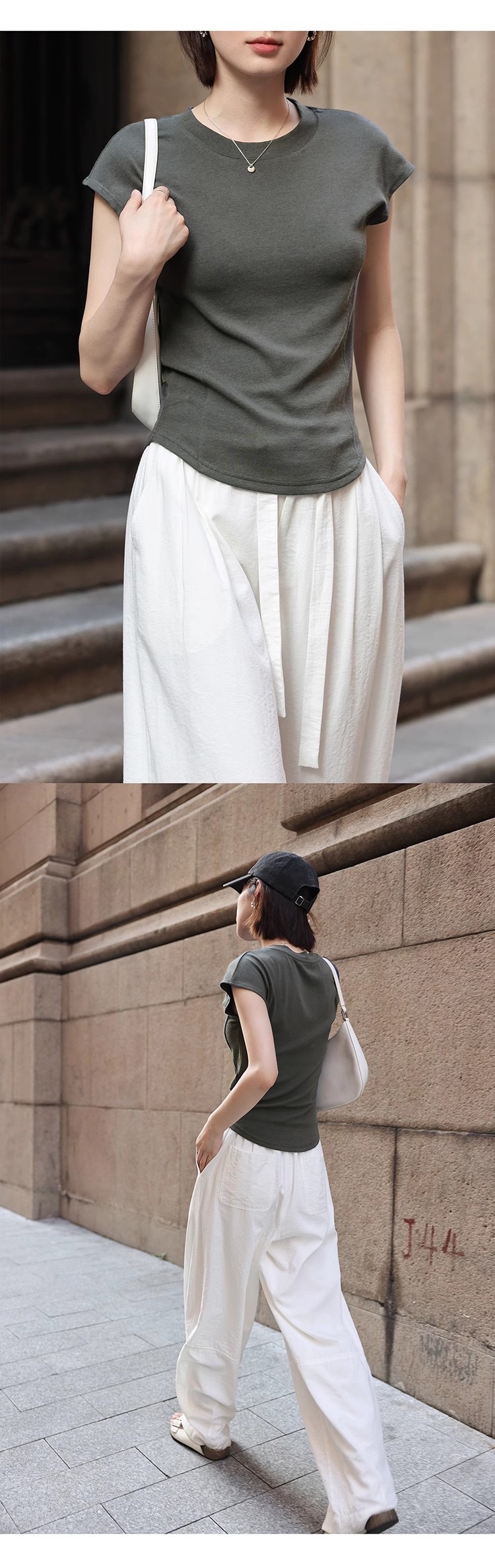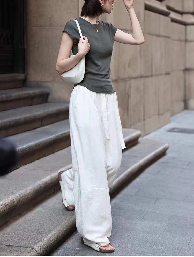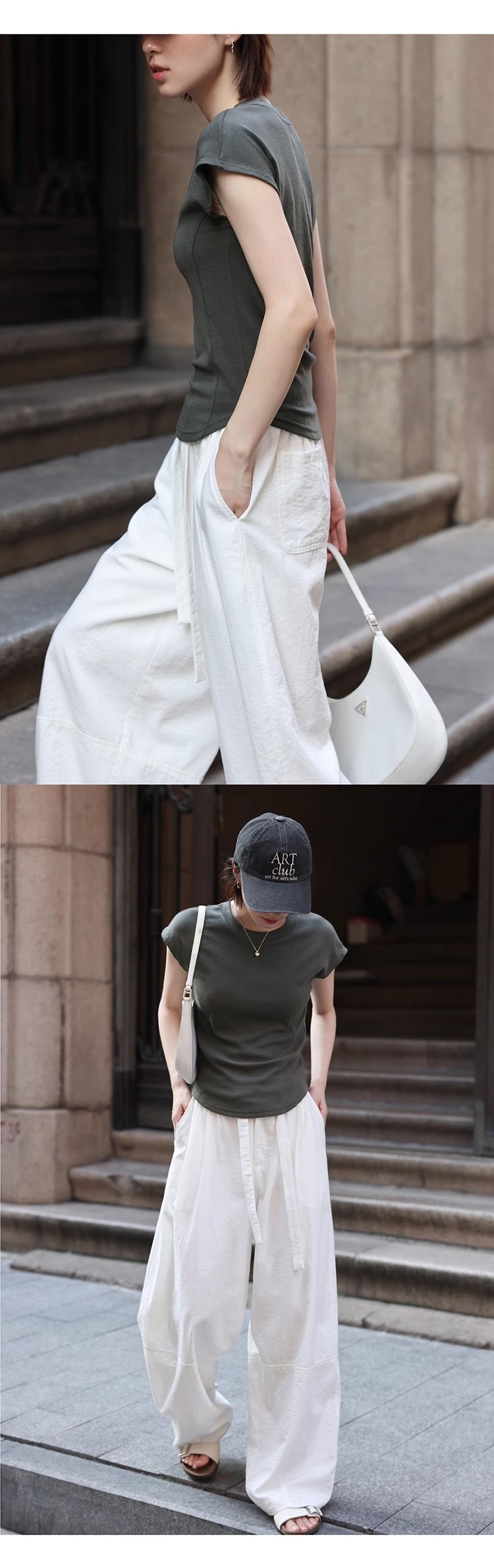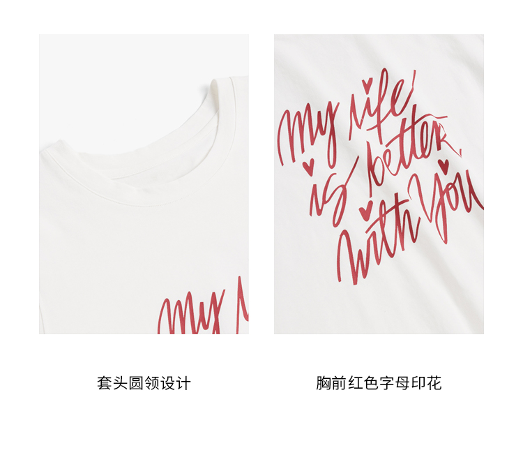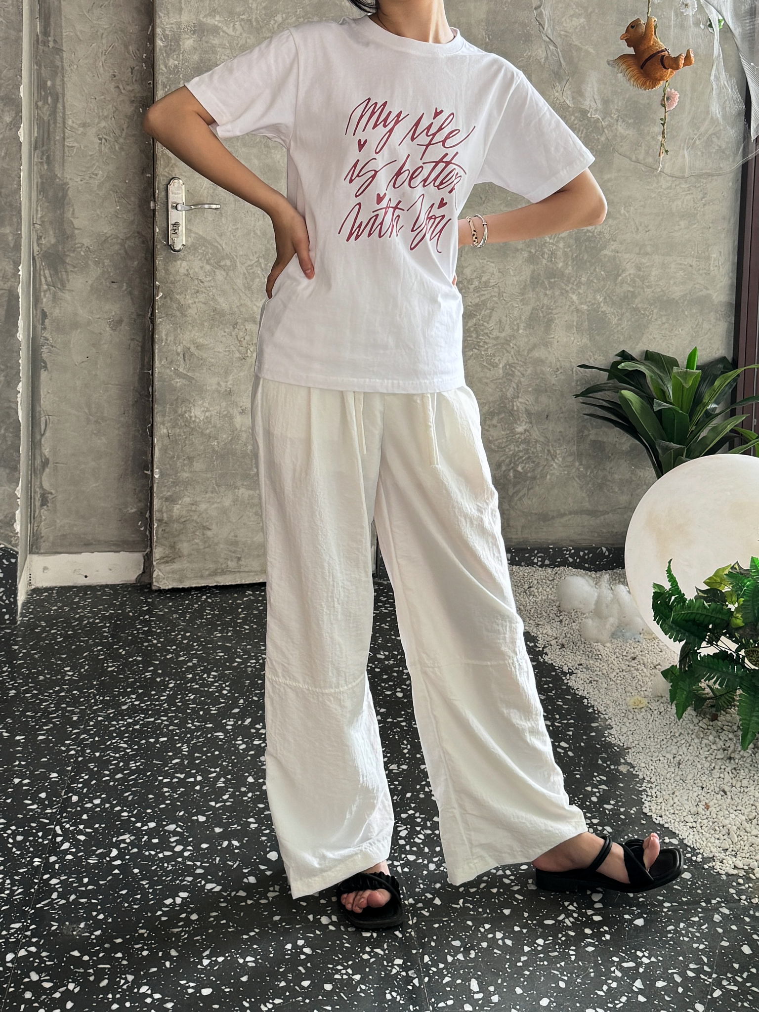 【休闲百搭 舒适面料】红色字母印花短袖T恤/薄款垂感阔腿裤 夏季女款短袖休闲显瘦上衣 松紧高腰显瘦裤子夏季必备阔腿长裤