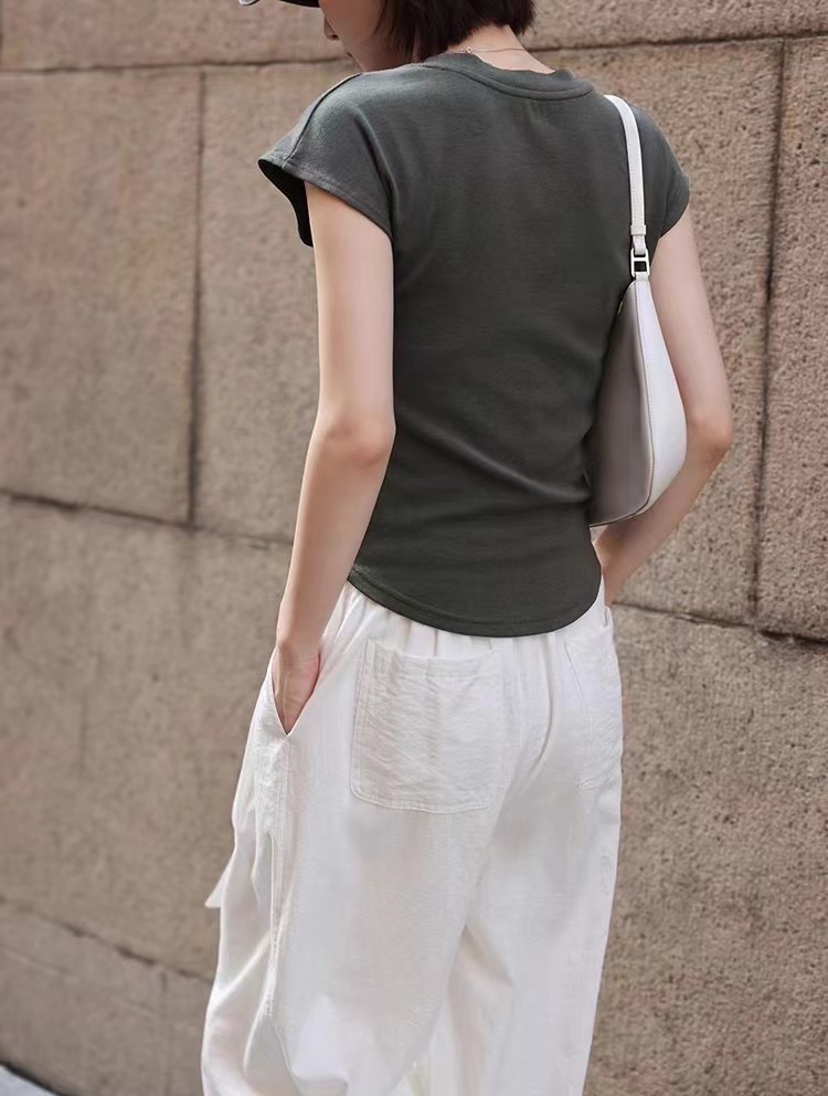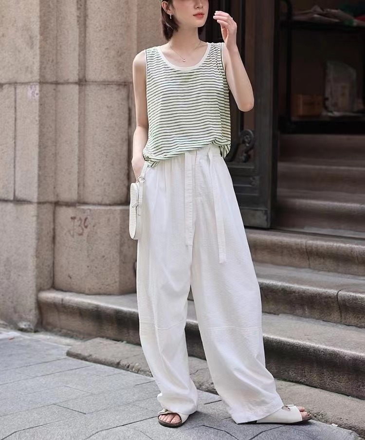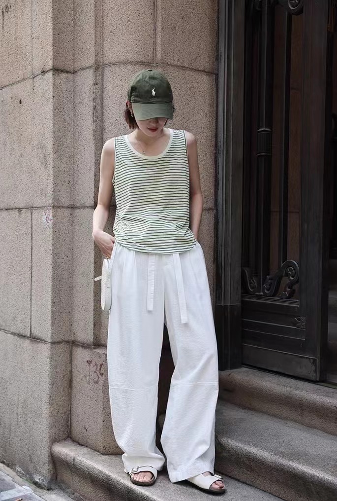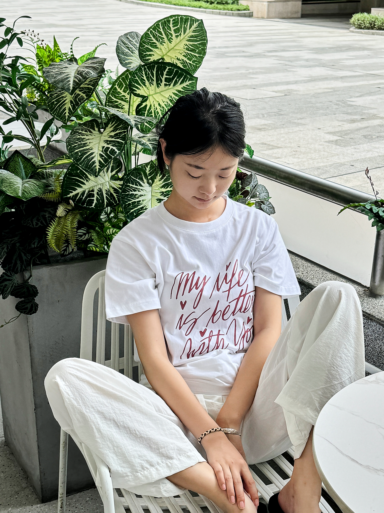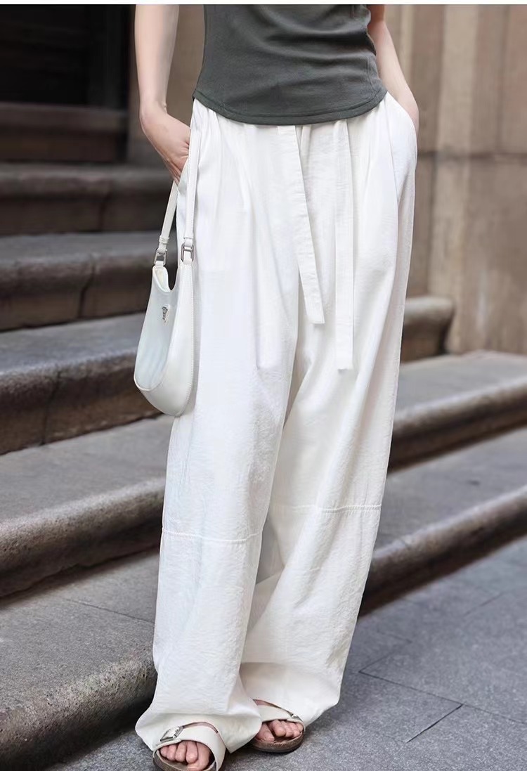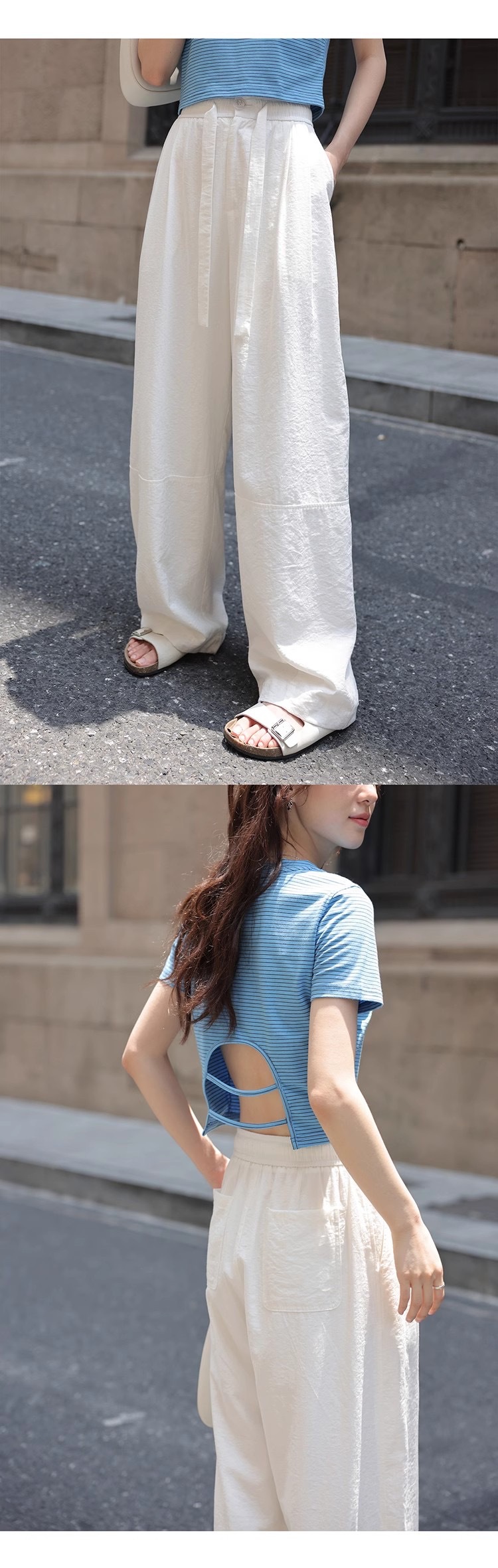 【休闲百搭 舒适面料】红色字母印花短袖T恤/薄款垂感阔腿裤 夏季女款短袖休闲显瘦上衣 松紧高腰显瘦裤子夏季必备阔腿长裤